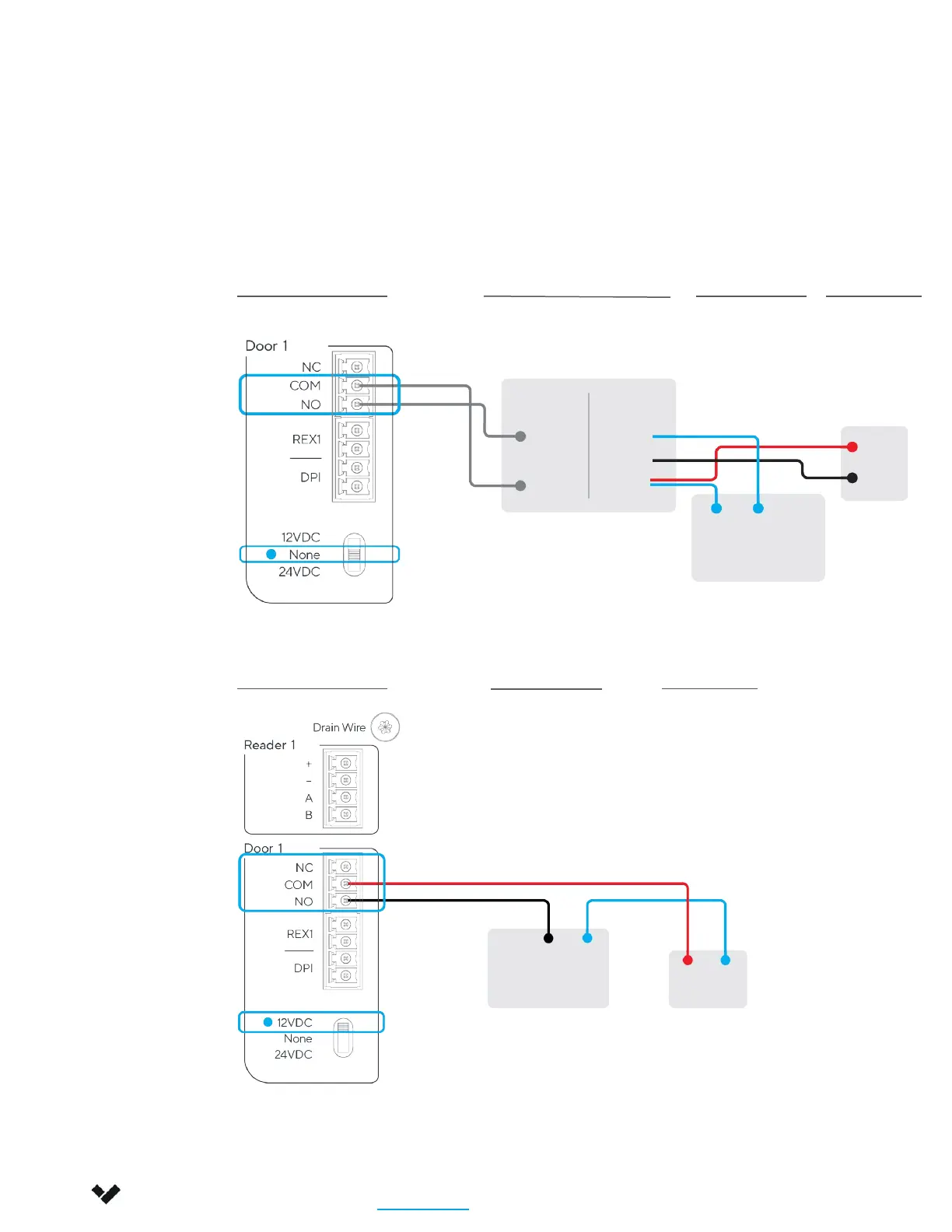 For safety-related applications, wire the REX in parallel with the Door Strike. You can wire additional