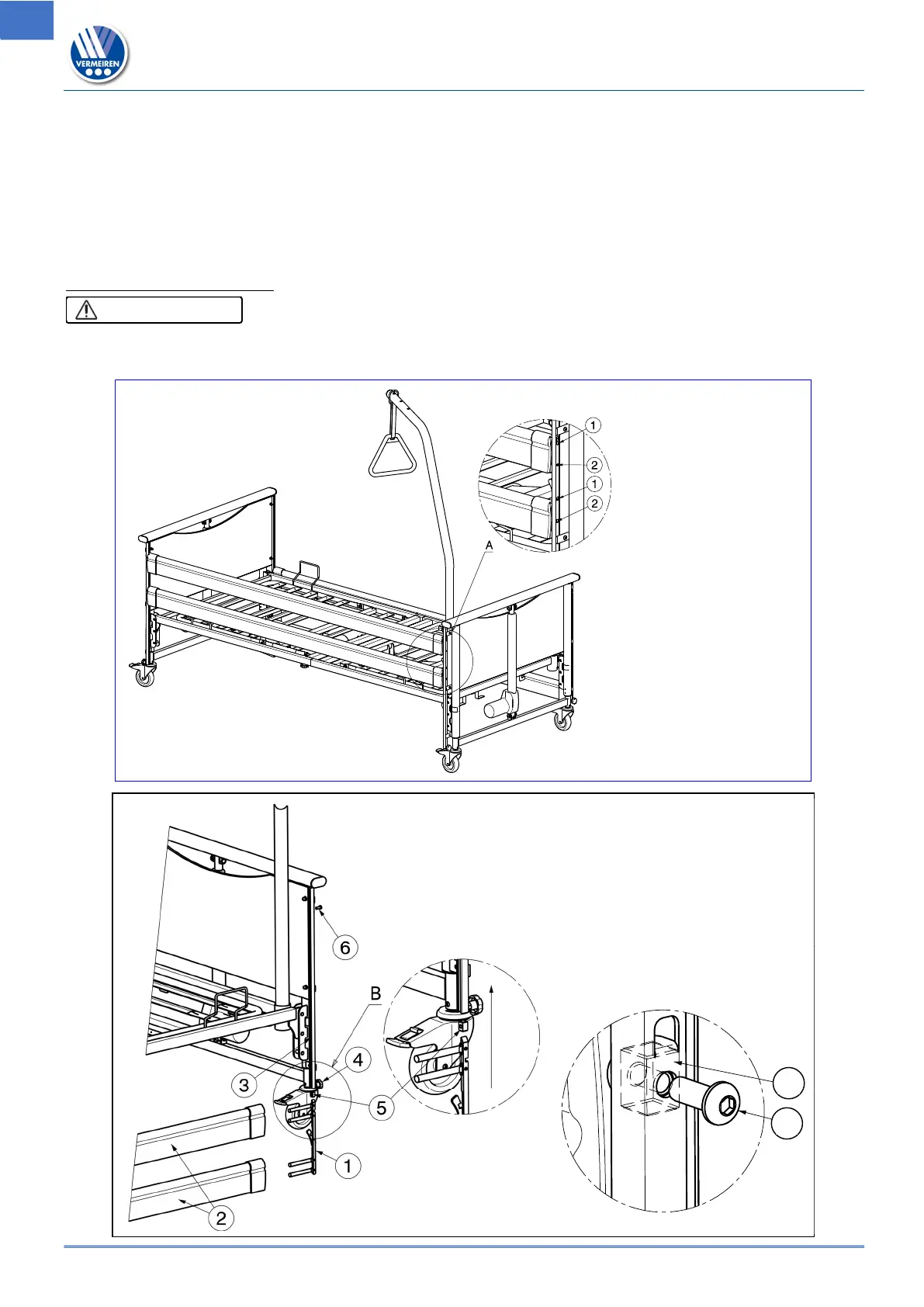 Adjust the bed to medium height. If the bed is adjusted too low, it is not possible to mount the side