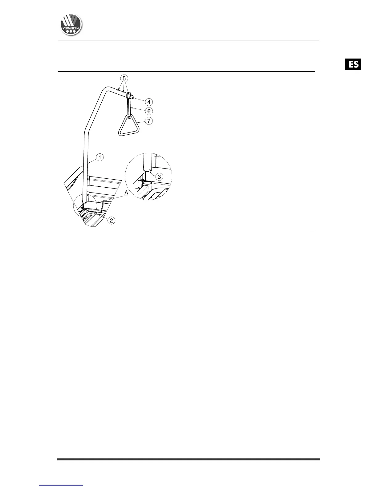 Tire del bucle de metal por el extremo del bastidor superior (4) hasta que los pernos