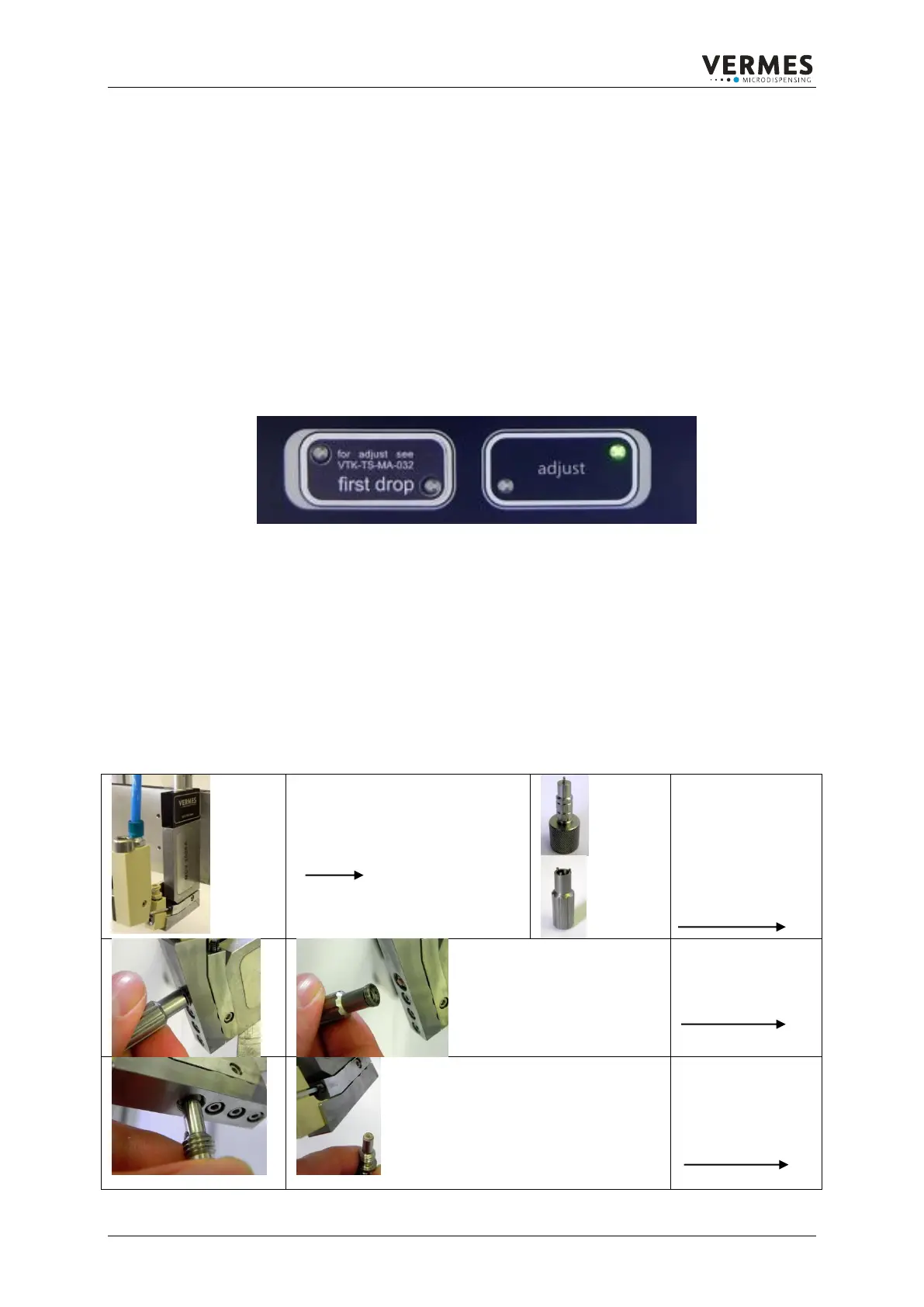 If the Micro Dispensing Valve is properly adjusted, the green LED lightens up on the front display.