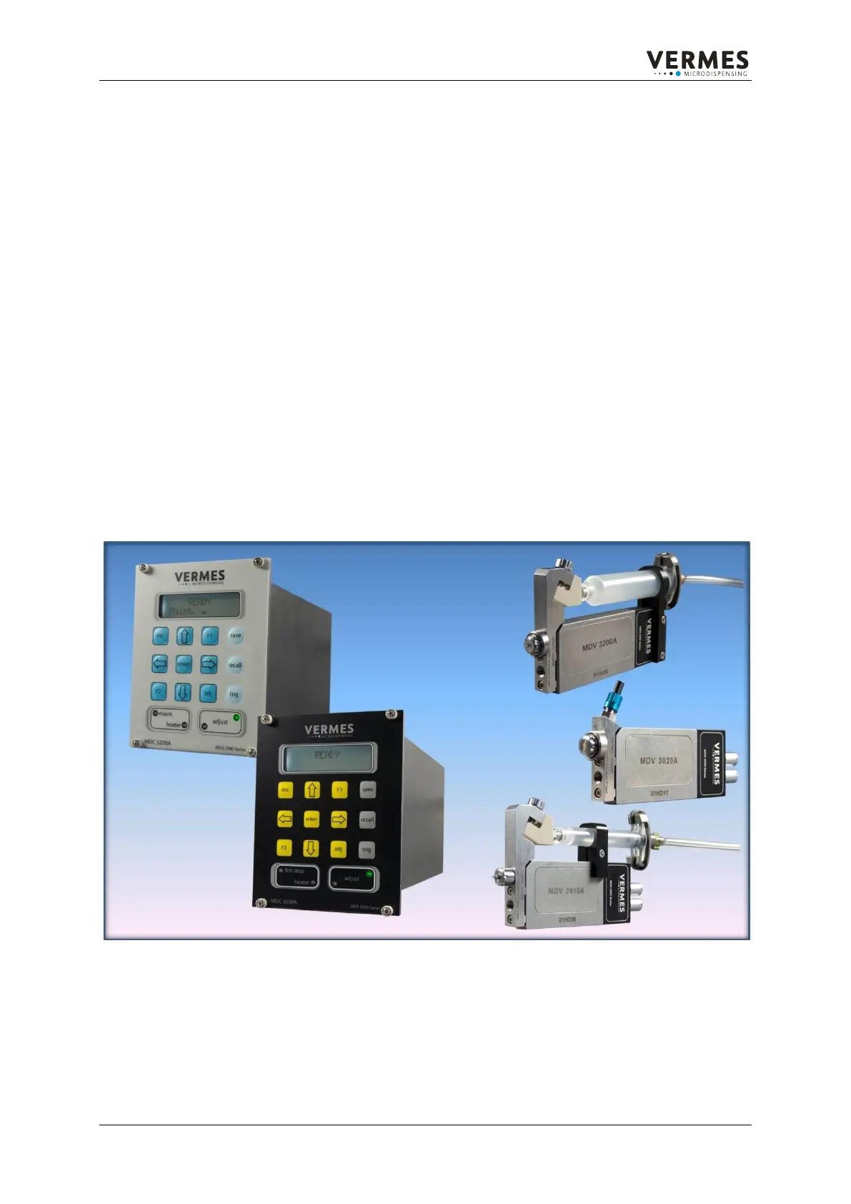 Dispensing Valves (MDV series), a MicroDispensing Control Unit (MDC series) and optional supply units