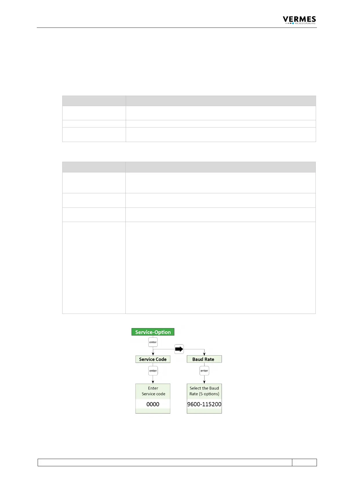 This menu has two sections. In “Service Code” you can enter a service code (see Tab. 17).
