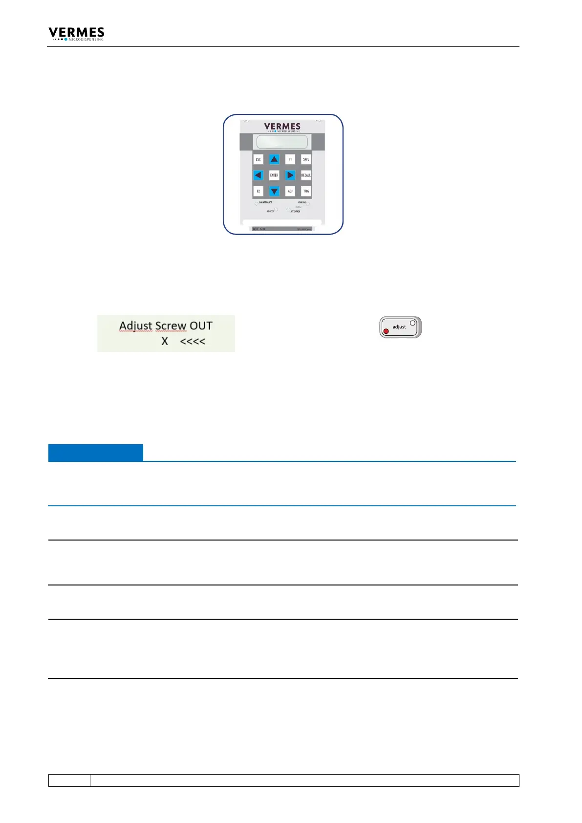 Fig. 47: Message Adjust Screw OUT – X <<<<, the red adjust LED is ON