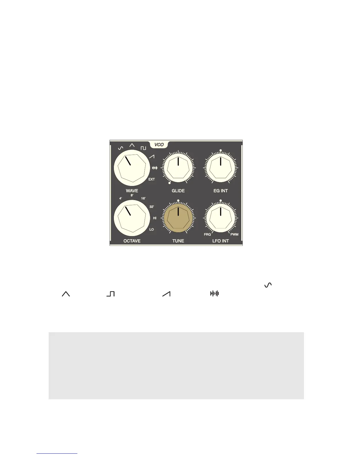 selects the waveform shape for the VCO. Available are: sine ( ), triangle