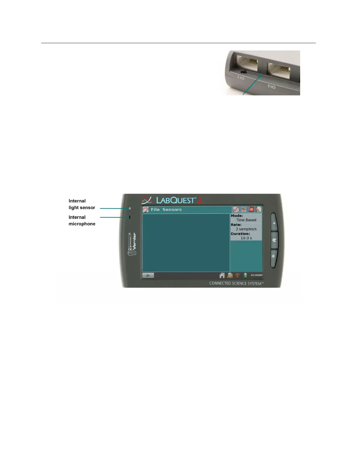 Light Sensor – The internal light sensor is located on the front of LabQuest, to the left of the