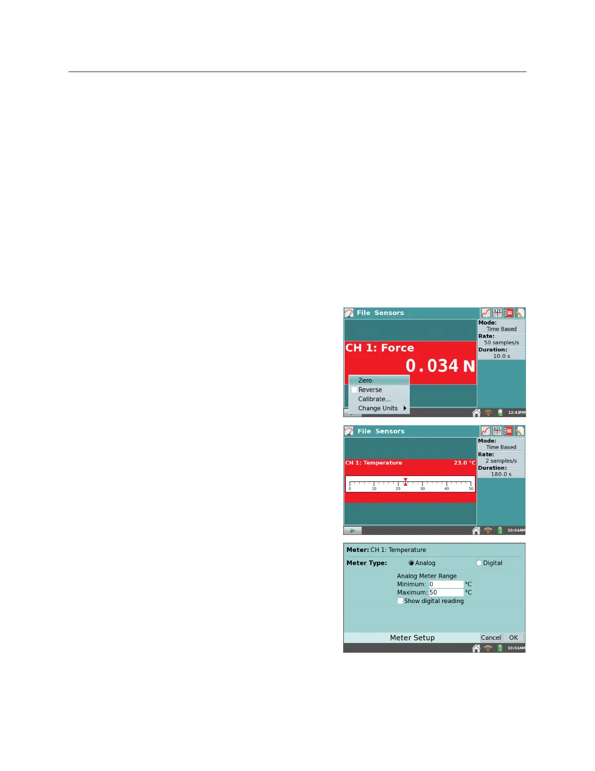 this screen. Tap on a meter to change sensor settings.