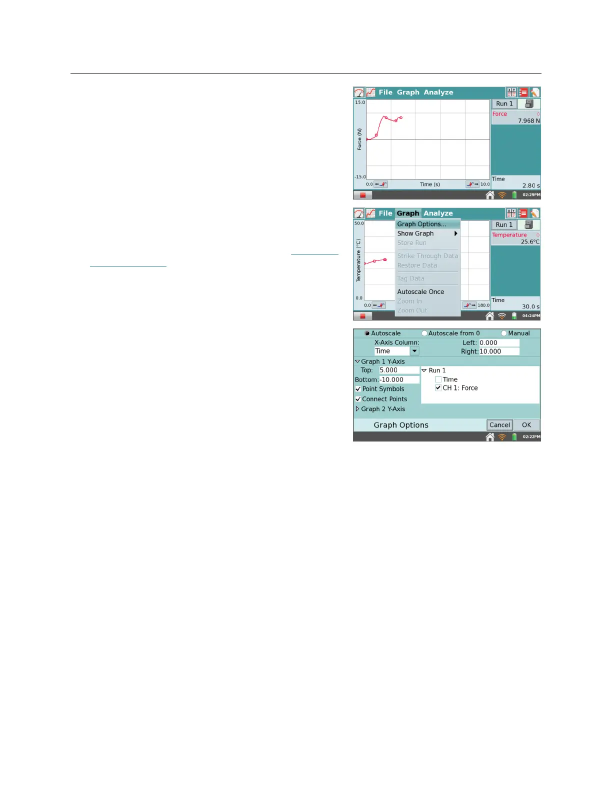 LabQuest can display a single graph or two graphs sharing a common x-axis and range. Tap