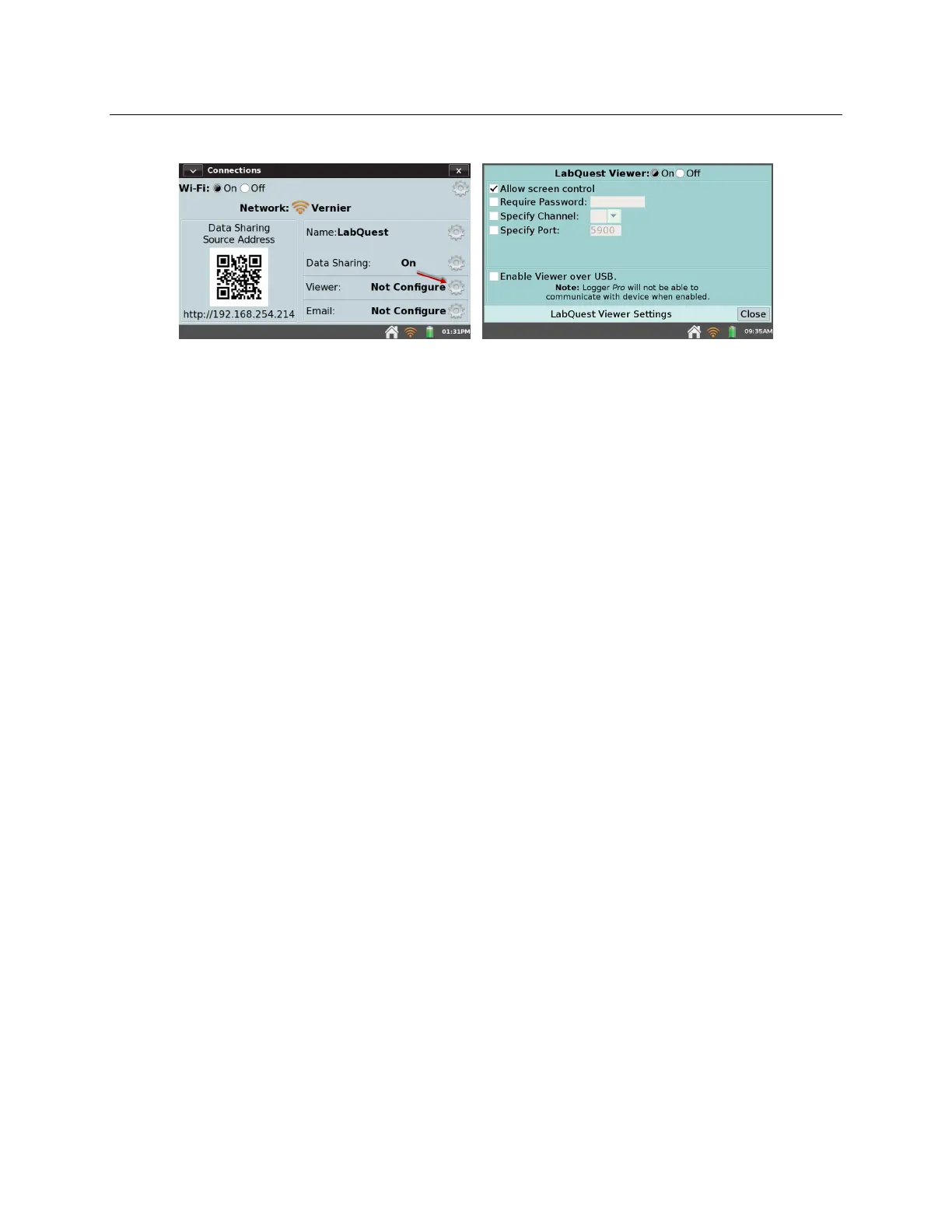 4. Enable LabQuest Viewer (On).