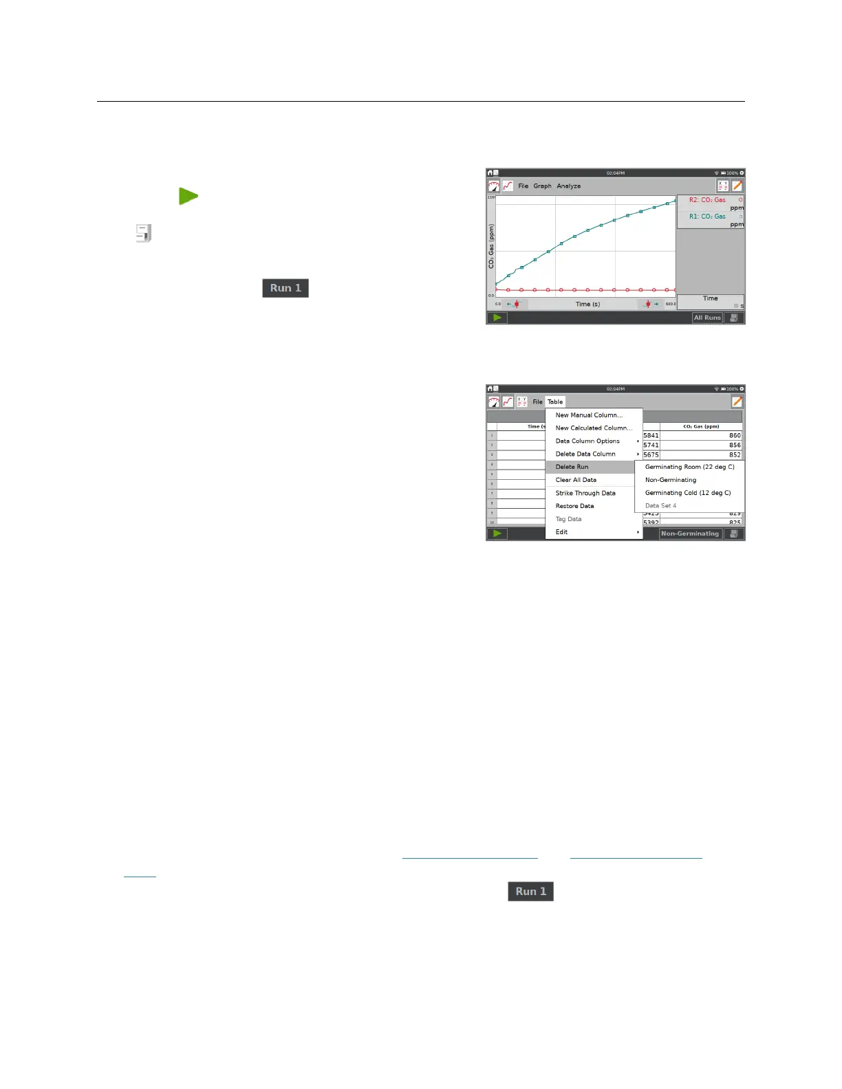 connected, the table and graph default to display two manual data columns: X and Y. You can