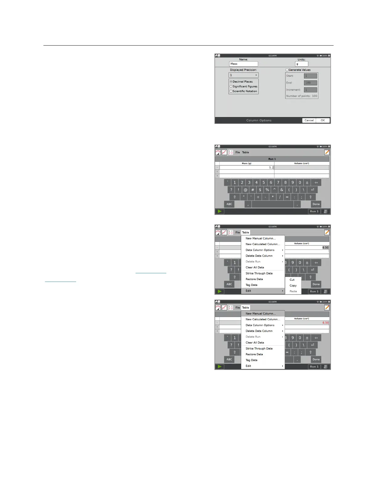 of another column, or you might calculate the ratio of mass and volume columns to create a