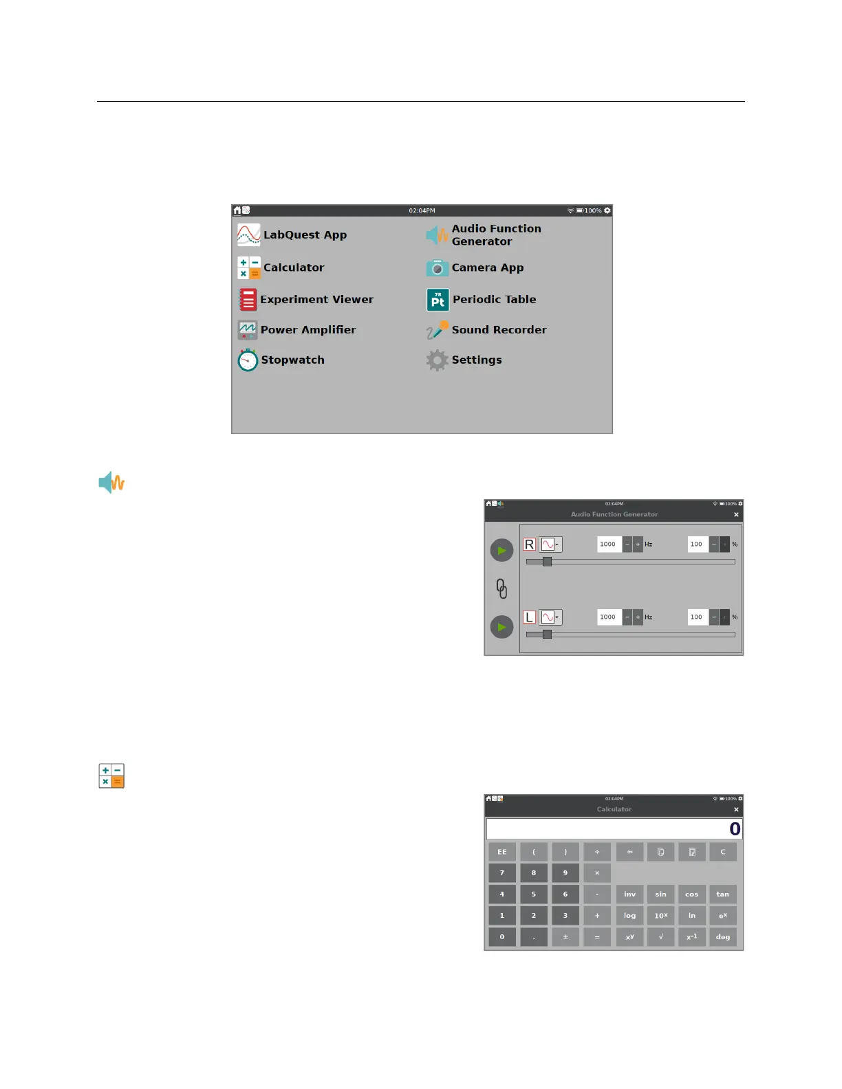 The Calculator App is a standard scientific calculator