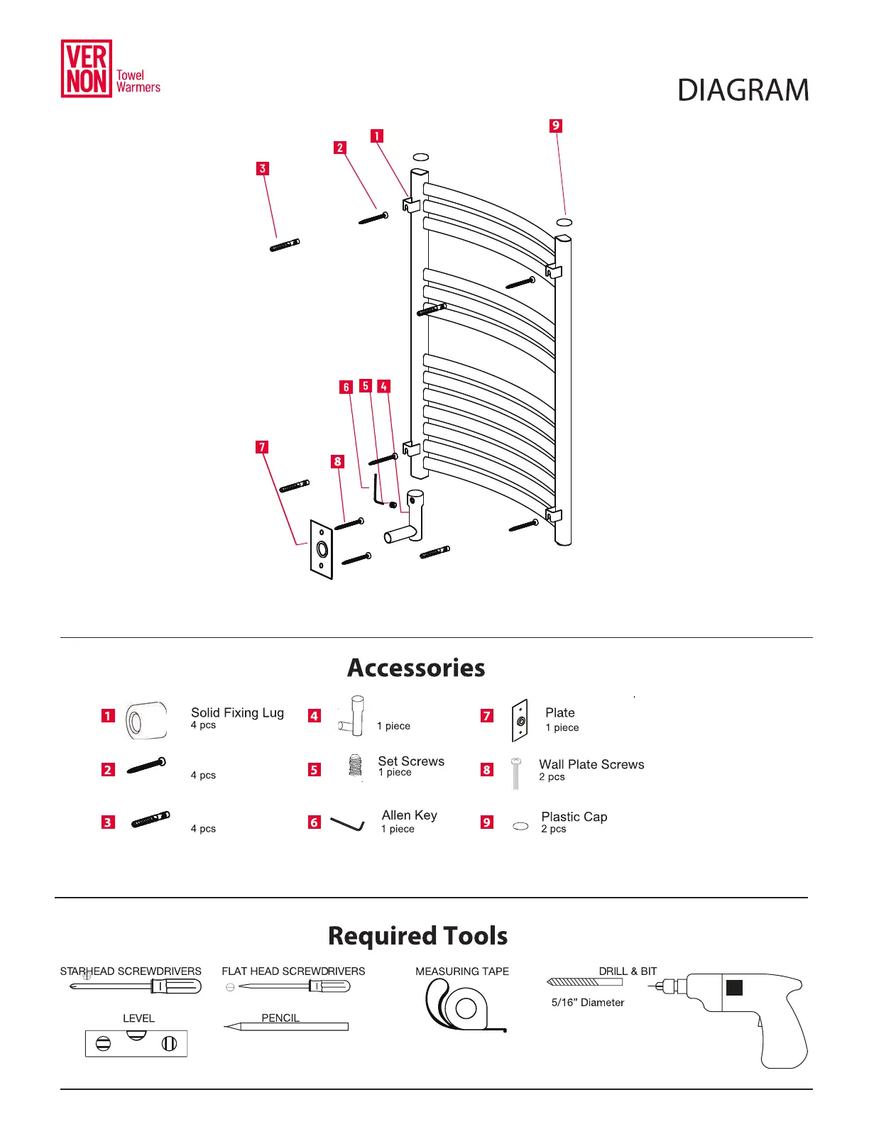 VERNON ATLANTA - ATLANTA DIAGRAM AND ACCESSORIES; ATLANTA DIAGRAM; Included Accessories; Required Tools for Installation