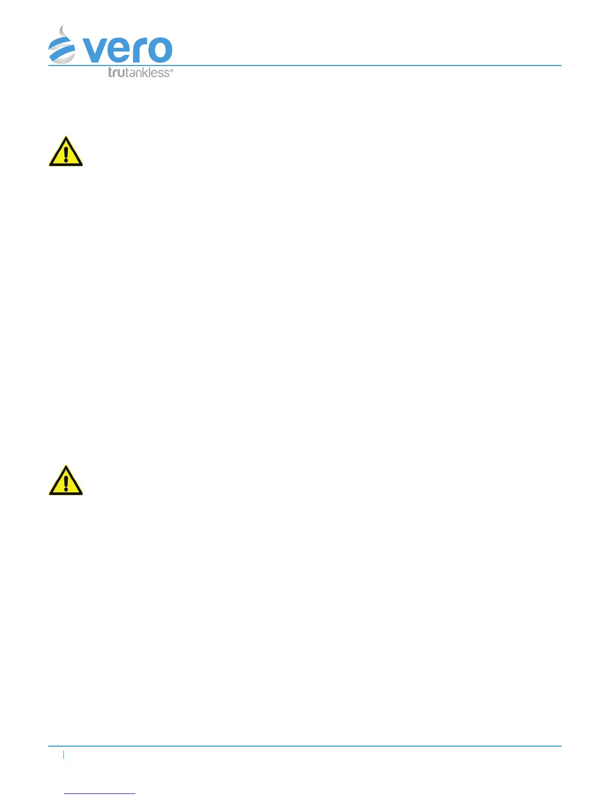 7. Electrical service to the VERO BR/BC trutankless water heater must be in accordance with all applicable national electric