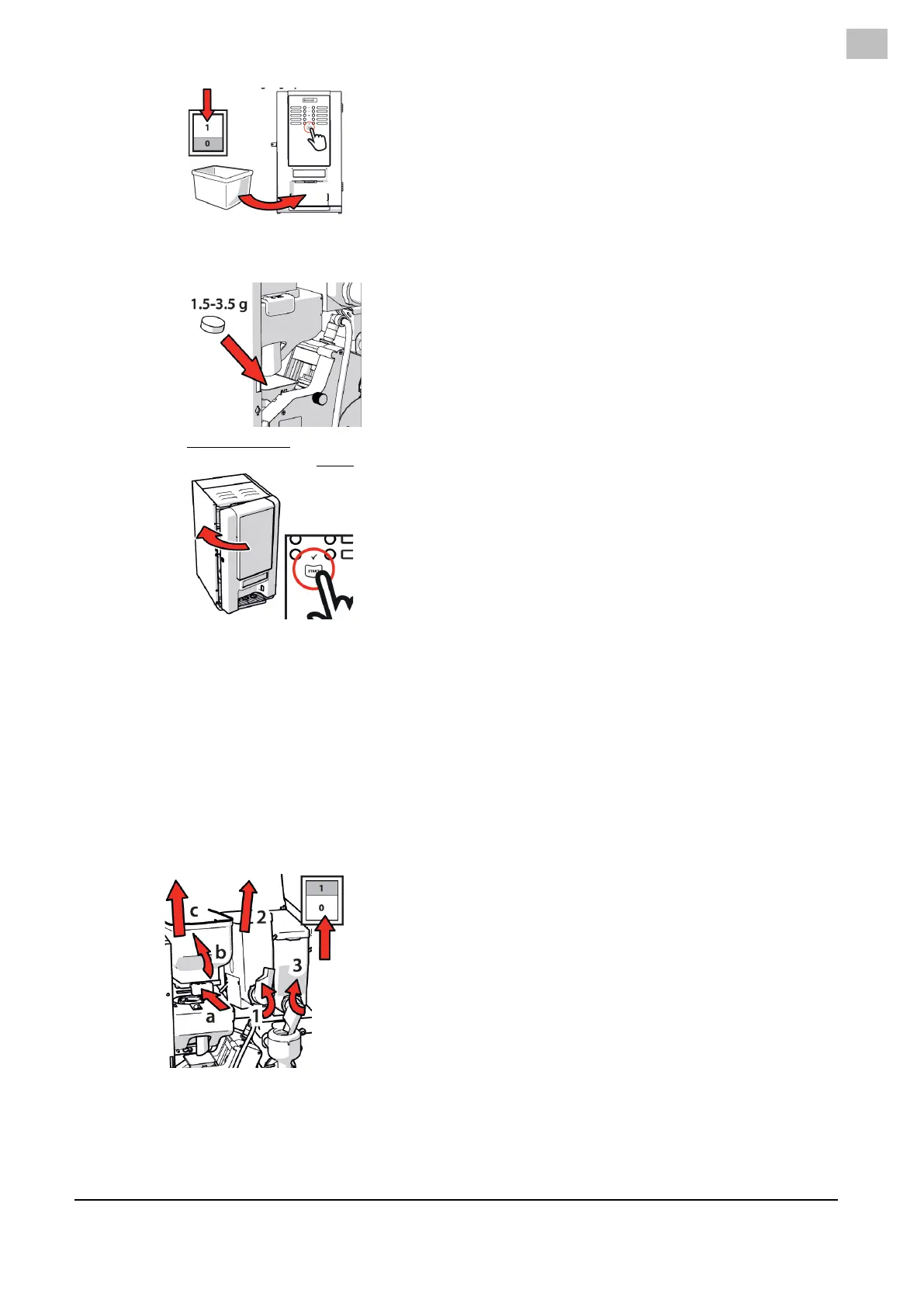 3 Turn the spouts of the instant product canisters upwards and remove the product canisters