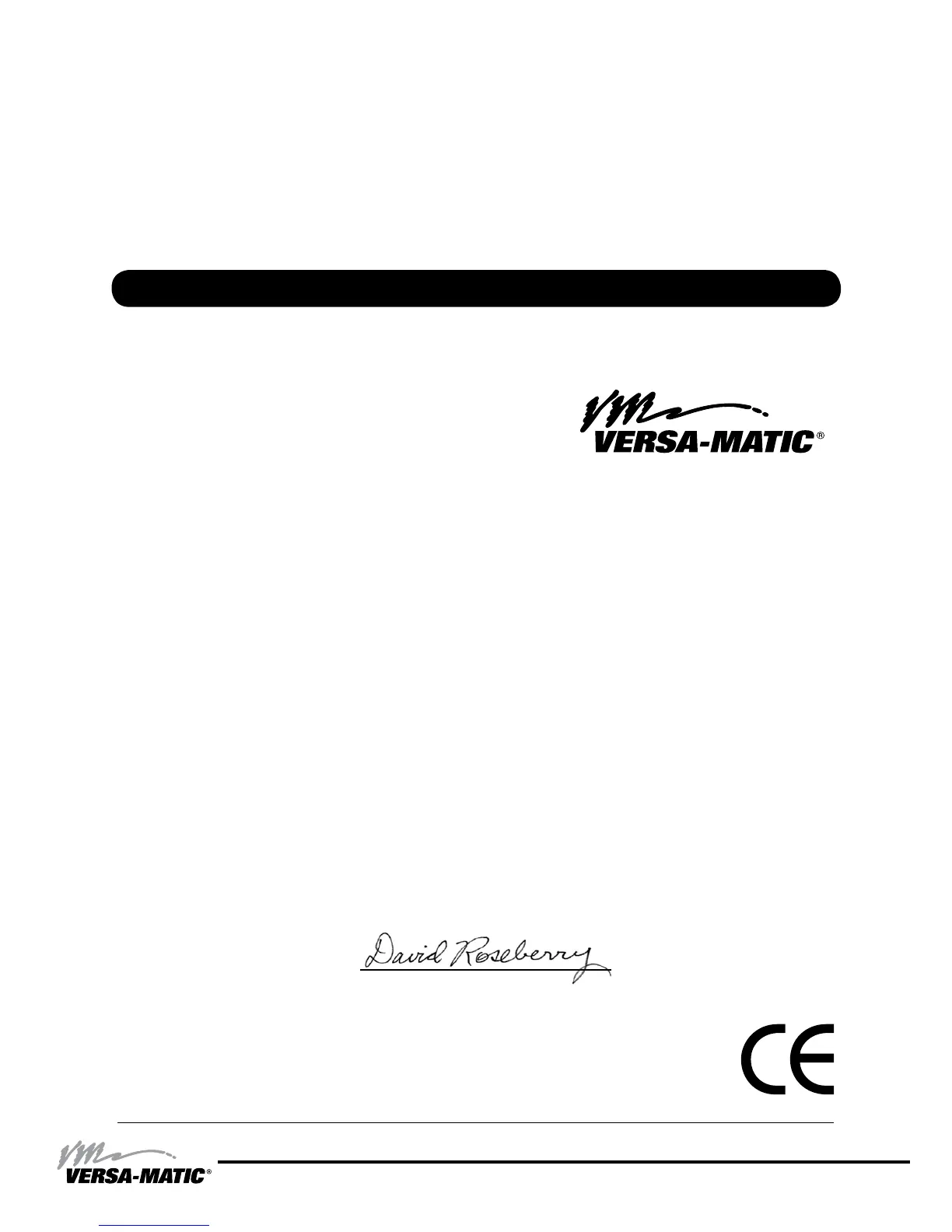 Versa-Matic, Inc., erklærer herved som fabrikant, at ovennævnte produkt er i overensstemmelse med bestemmelserne i Direkktive:
