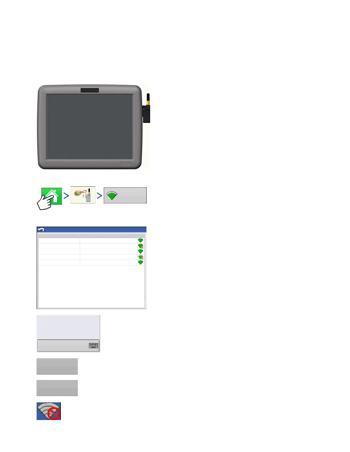 Press: Home button > AgFiniti button > Networking button