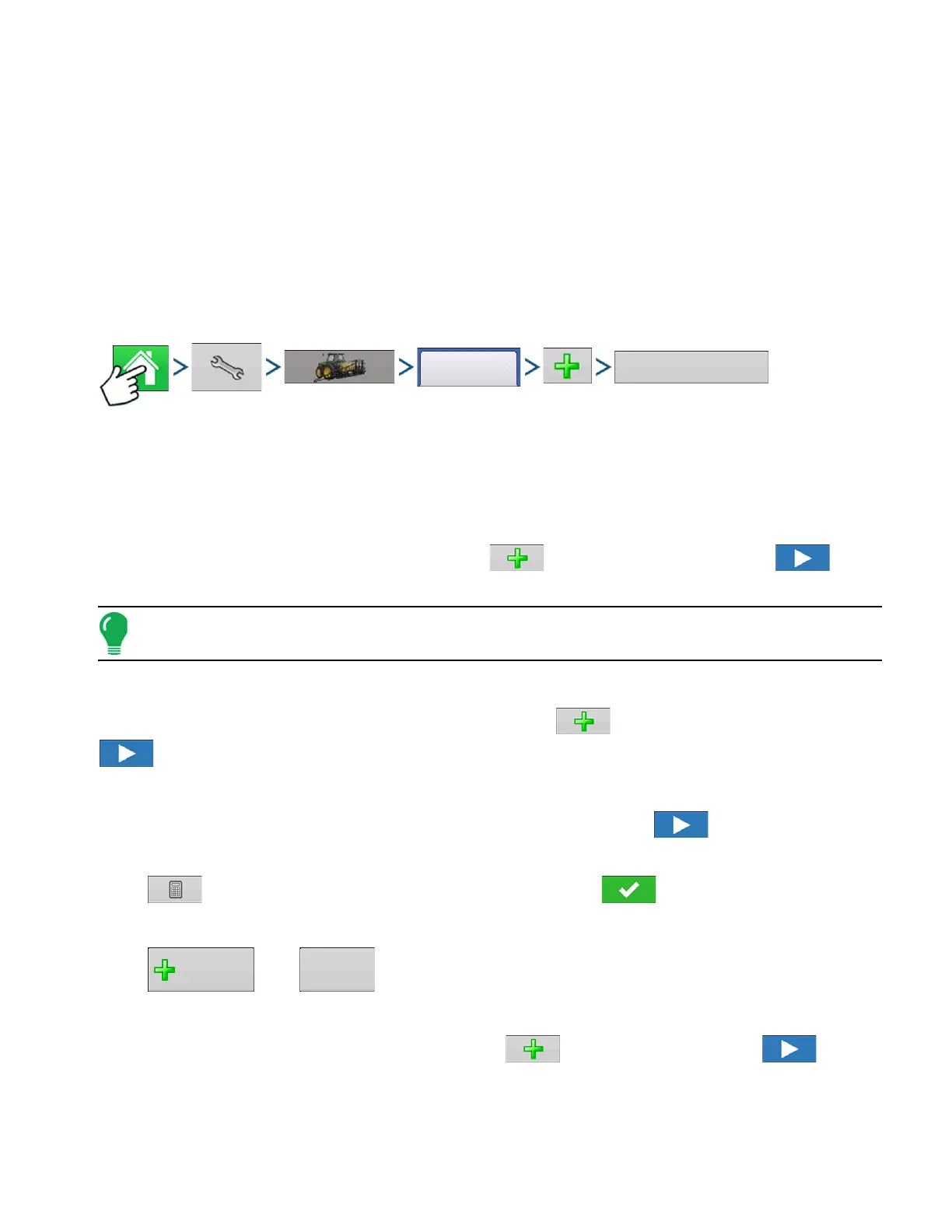 Press: Home button > Setup (wrench) button > Configuration (tractor) button > Configuration tab > Add