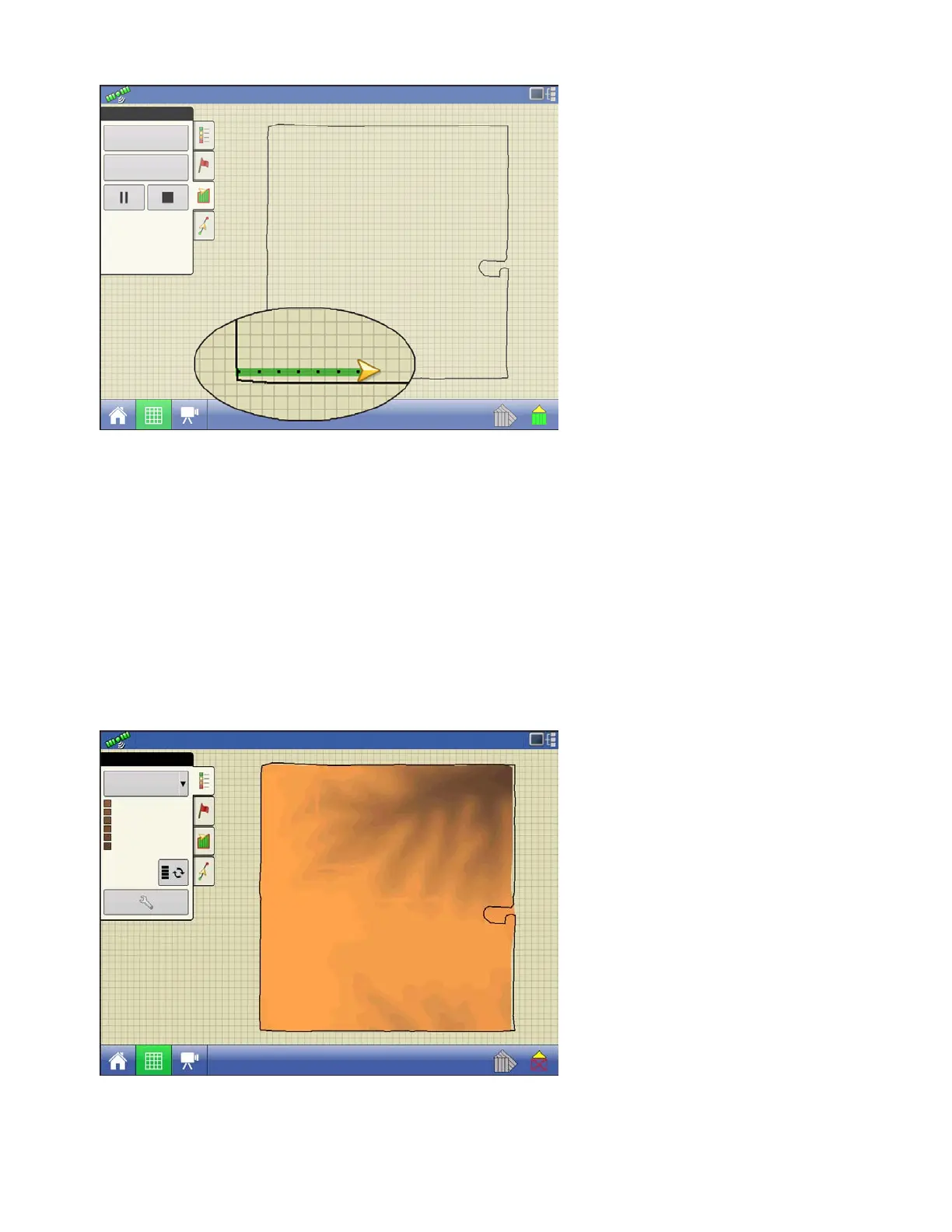 • Surveying with harvesting equipment can provide streaked maps as the hopper filling and unloading can