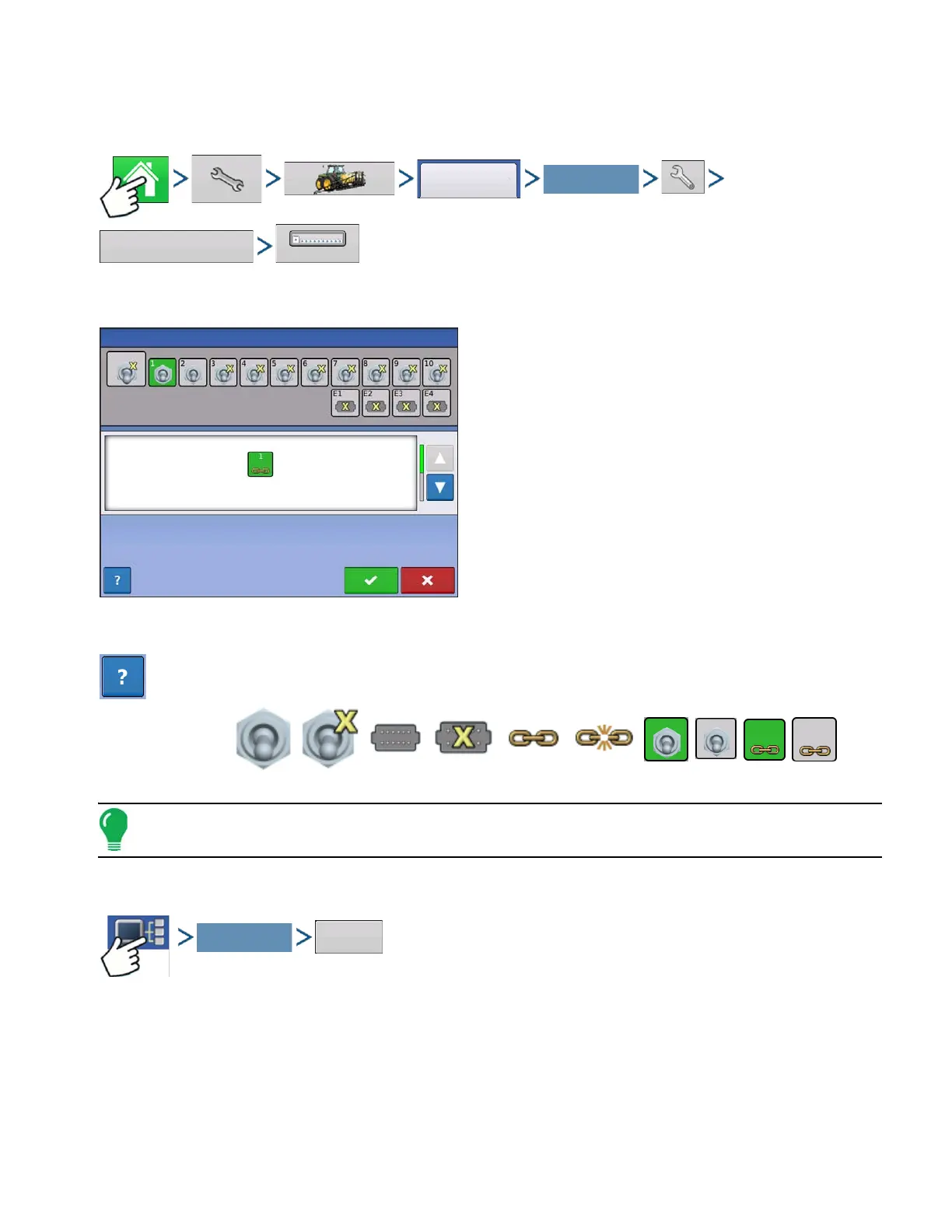 Press: Home button > Setup (wrench) button > Configuration (tractor) button > Configuration tab > your