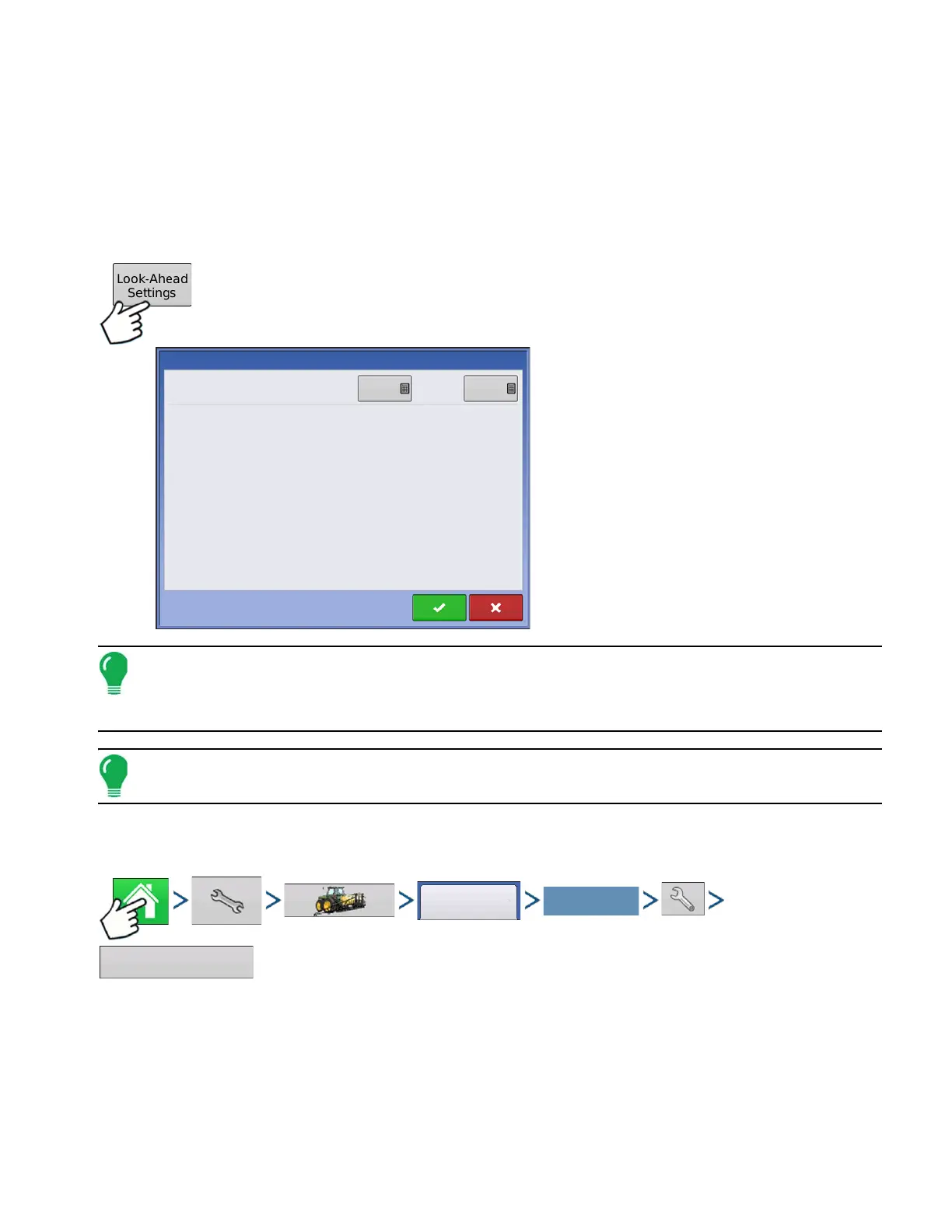 AutoSwath Control settings are saved per controller per configuration. The Look-Ahead