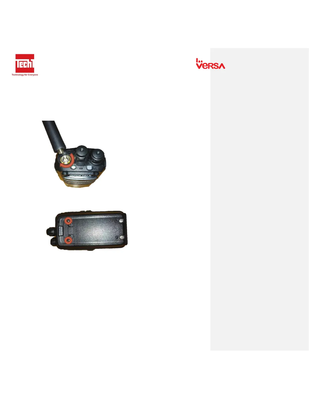 versa Quicktalk Go - Antenna; Belt Clip; Earpiece (Optional)