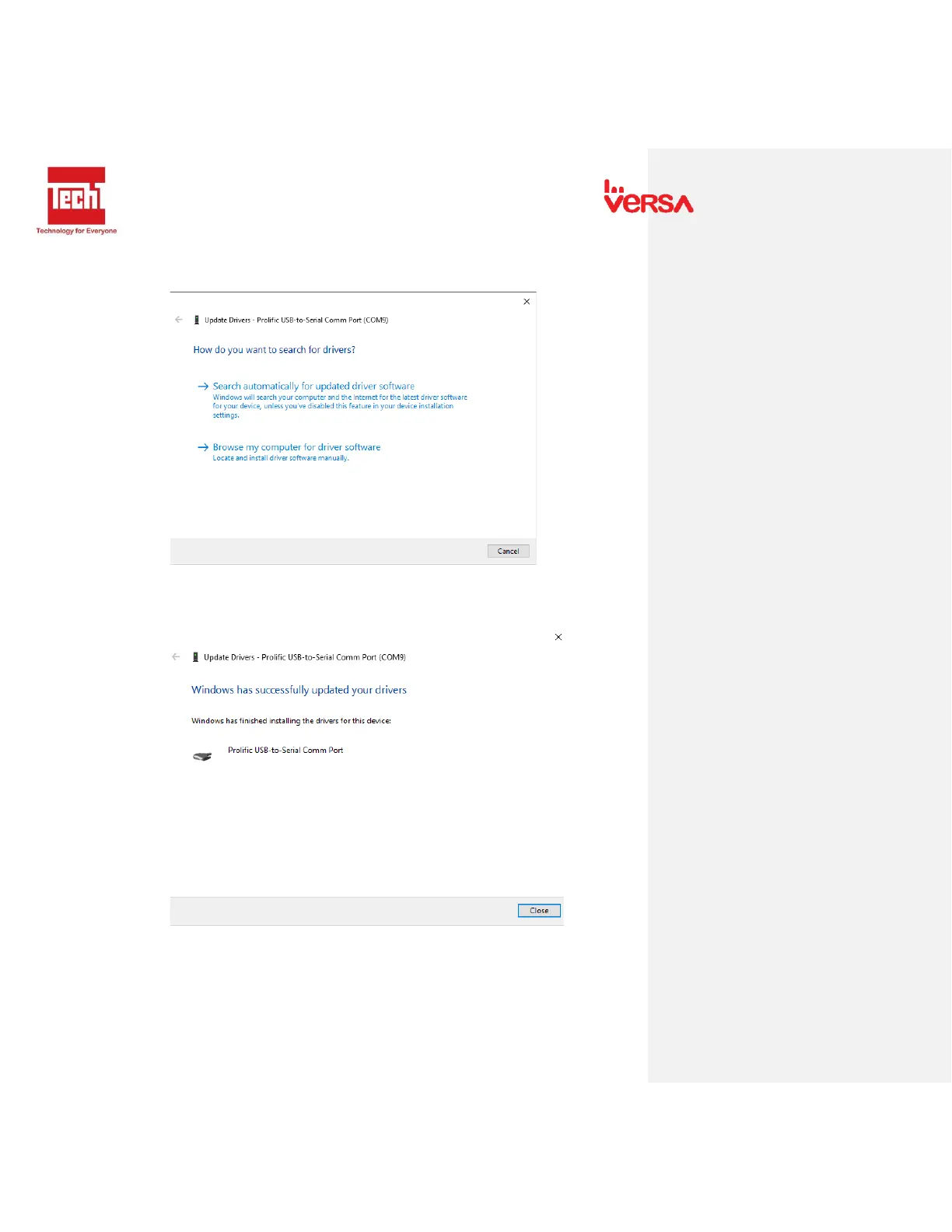 3. Right click the Prolific USB-to-Serial Comm port then click Update Driver. The