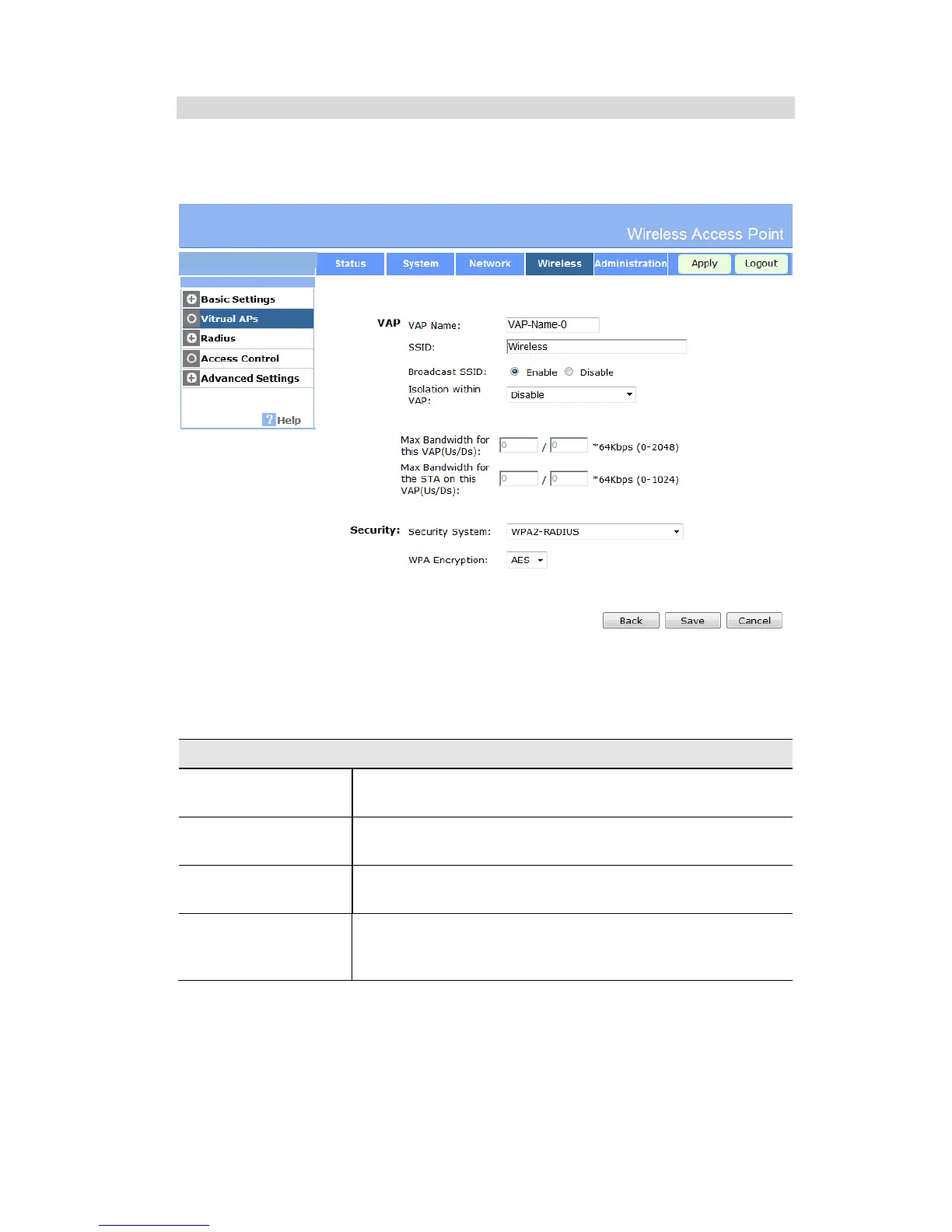 Figure 18: WPA2 with Radius Wireless Security Screen
