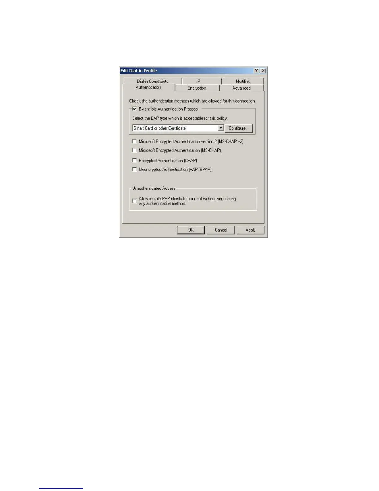 Protocol, and select Smart Card or other Certificate. Deselect other authentication meth-