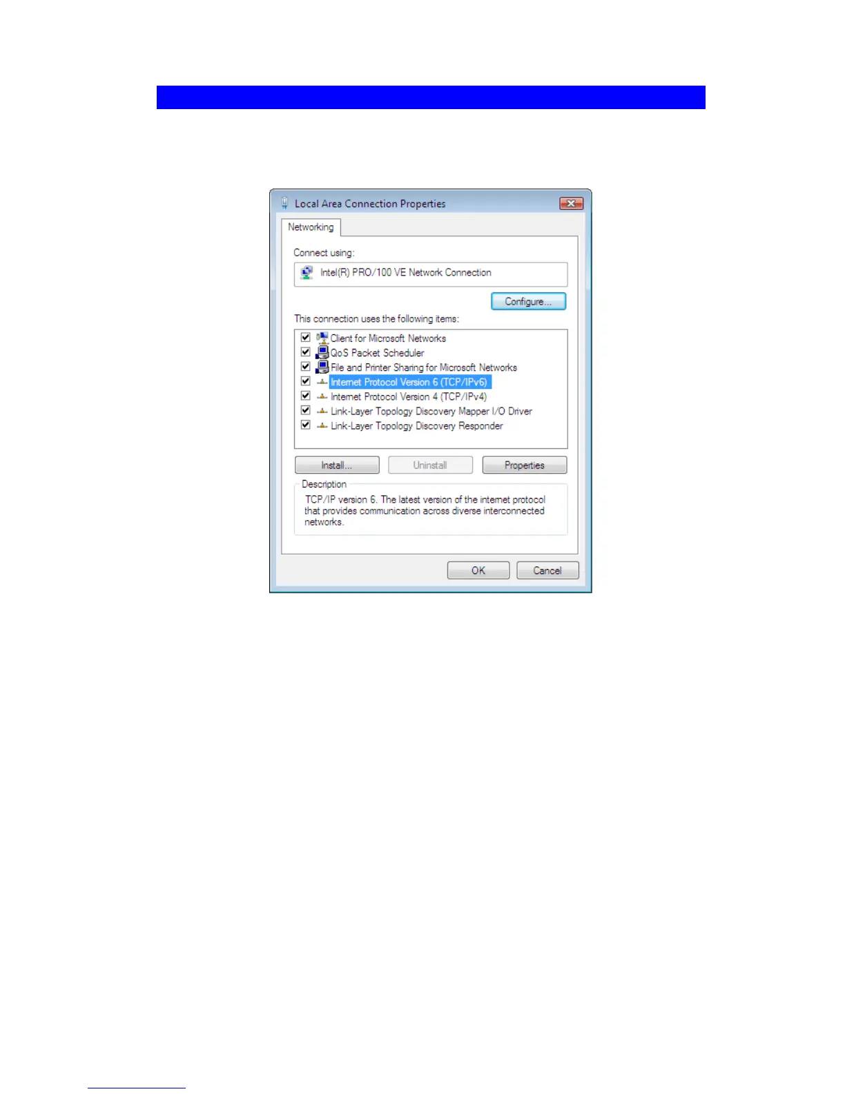 Figure 72: Network Configuration (Windows Vista)