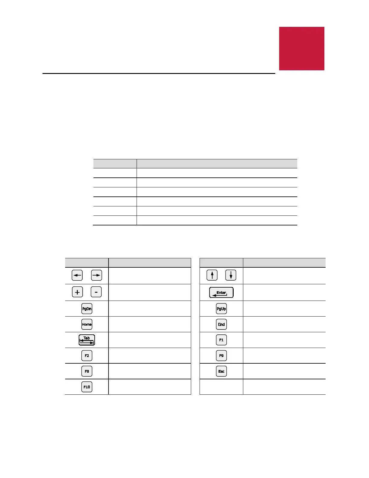 This next table lists the function keys available for menu screens.