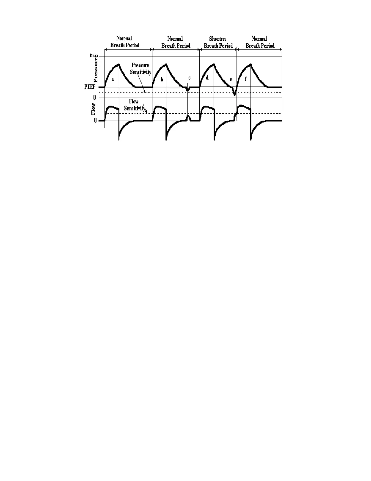 assist breath is initiated (event f). This resets the breath cycle, thus breath rate is
