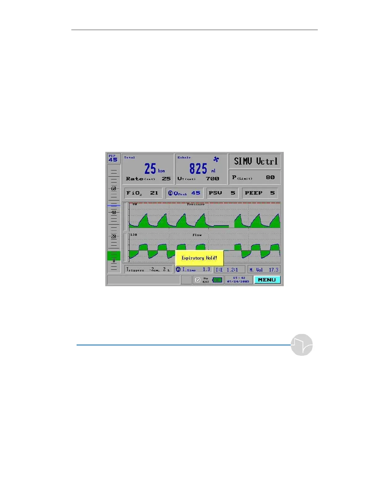 To initiate an end expiratory hold maneuver, press the “hold” button on