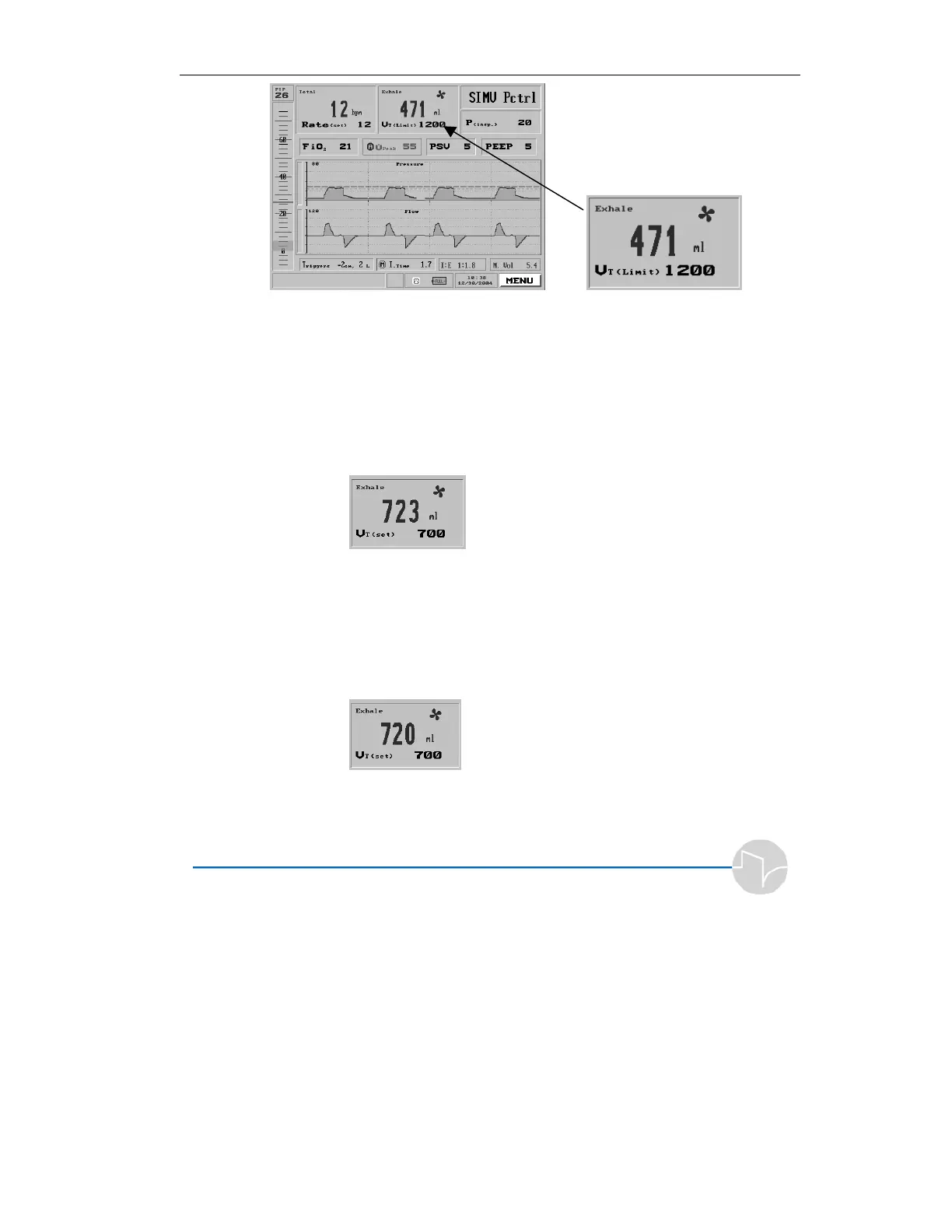 Figure 3.17 The Tidal Volume window, with the breath type icon