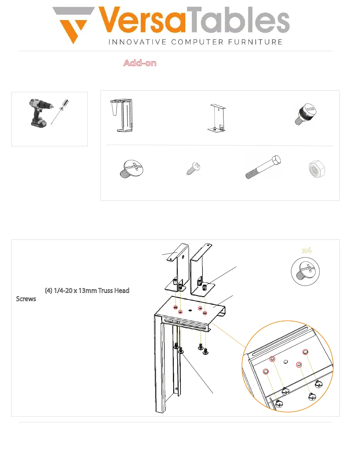 Then, use (4) 1/4-20 x 13mm Truss Head