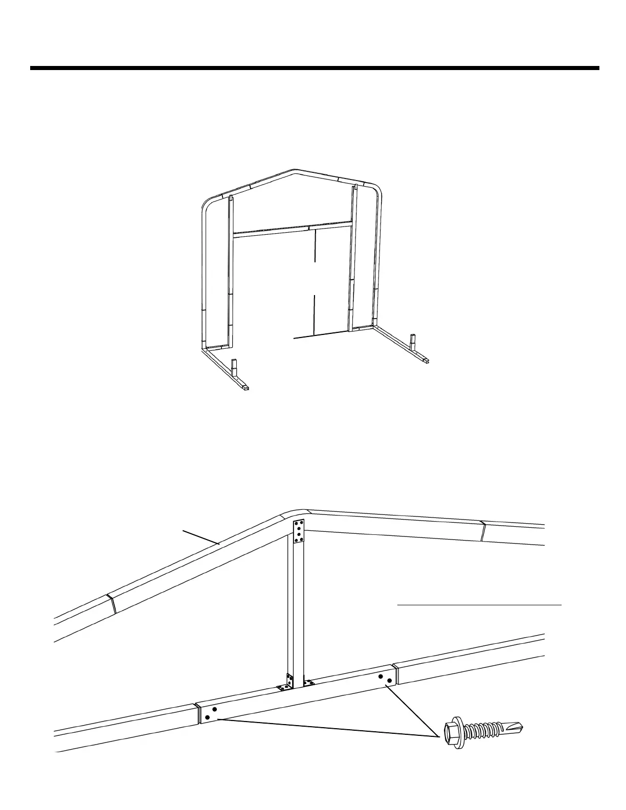 ing screws per bracket. Level the Door Header Assembly and attach the top of the Door Header Vertical to the building Peak