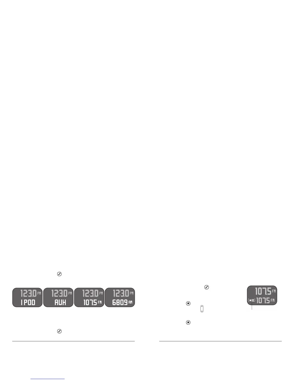 between iPod (1), Aux (2) (external audio source), FM (3), or AM (4)