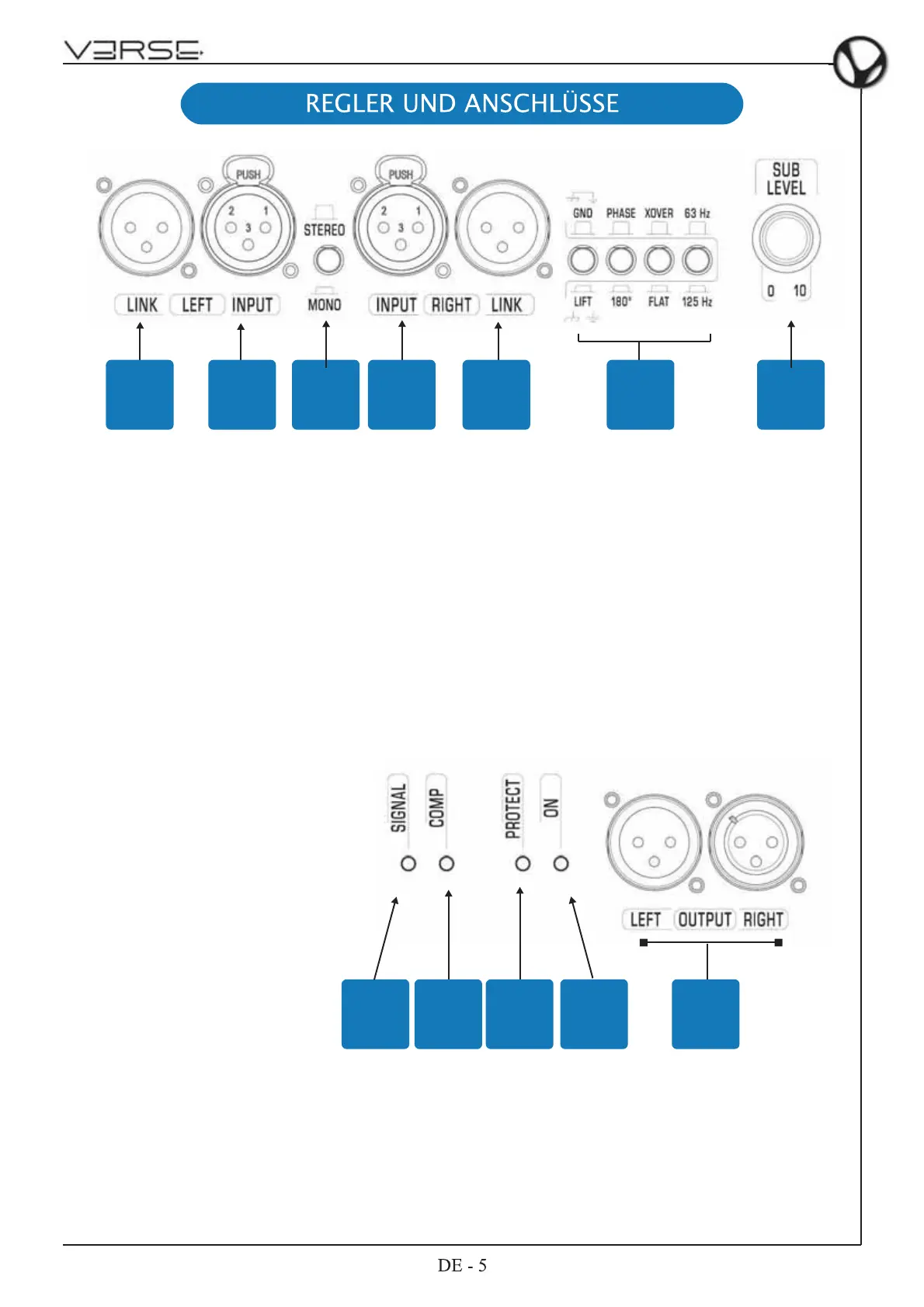 1 & 5. LEFT/RIGHT LINK: schickt in den Ausgang dasselbe Signal, das von den Konnektoren