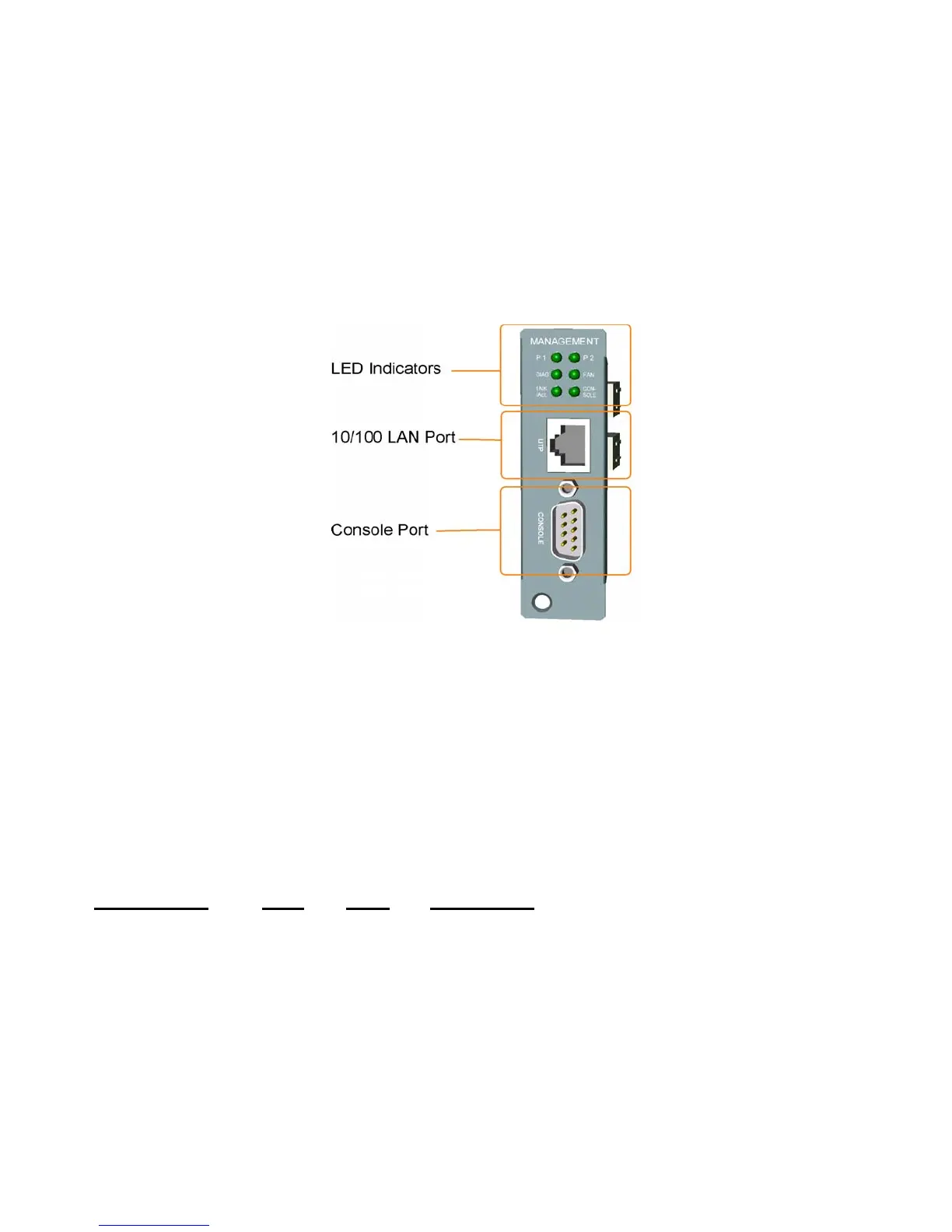 See figure below for major components on the management module panel: