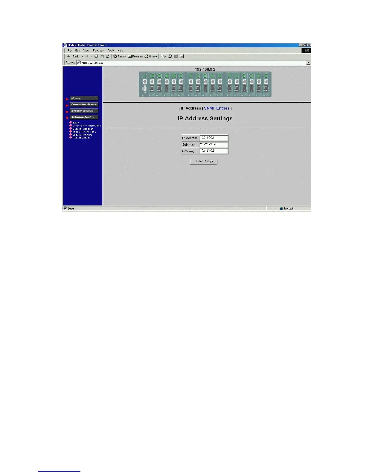 Click [Update Settings] to make new settings effective. However, a new IP address change will make your