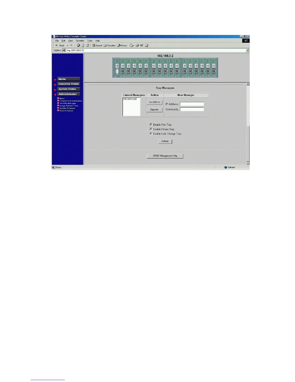 Click [Remove] to remove one trap manager from the manager list.