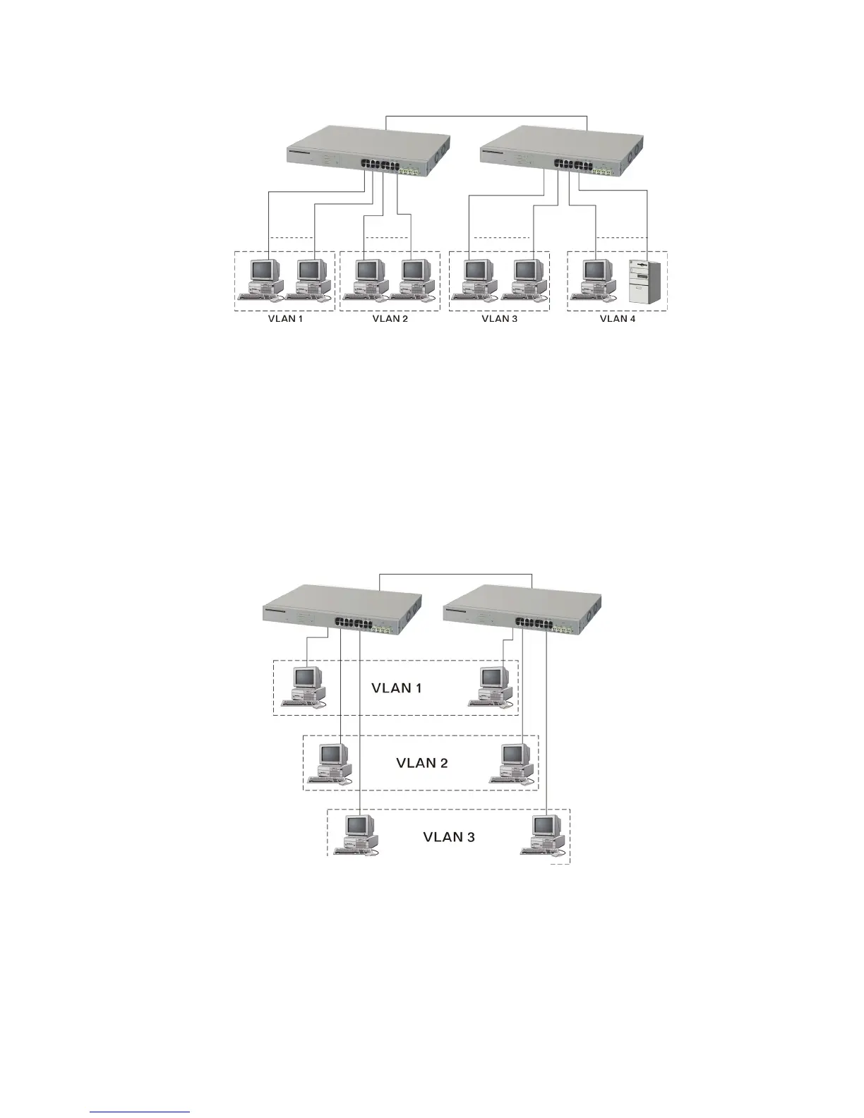 Case3a: The same VLAN members can be at different switches with the same VID (See Fig. 2-