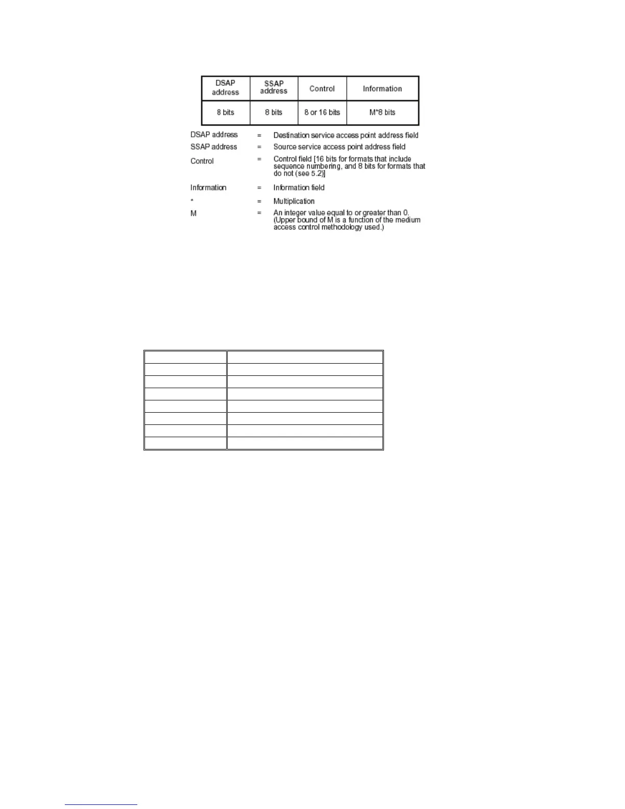field identifies the specific services indicated by C/R bit (command or response). The DSAP and SSAP
