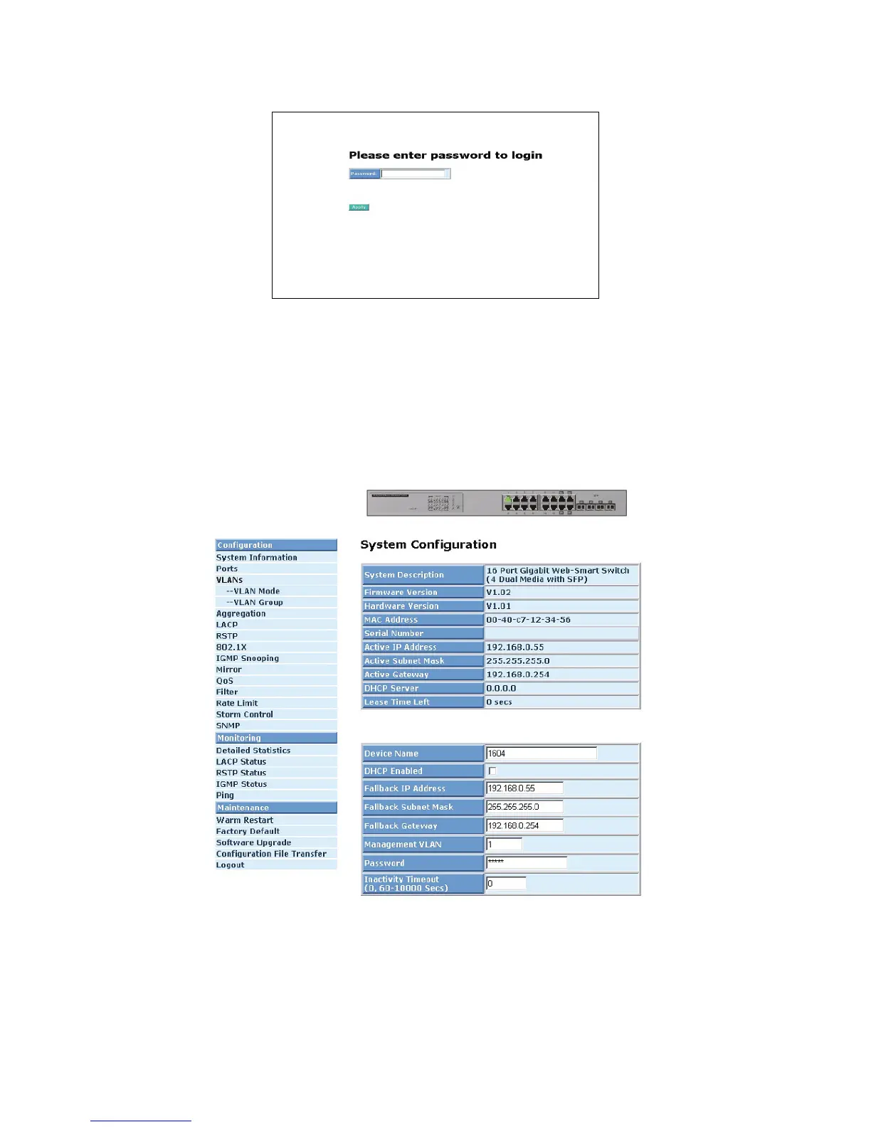 information, you will know the software version, MAC address, ports available and so on. For more details,