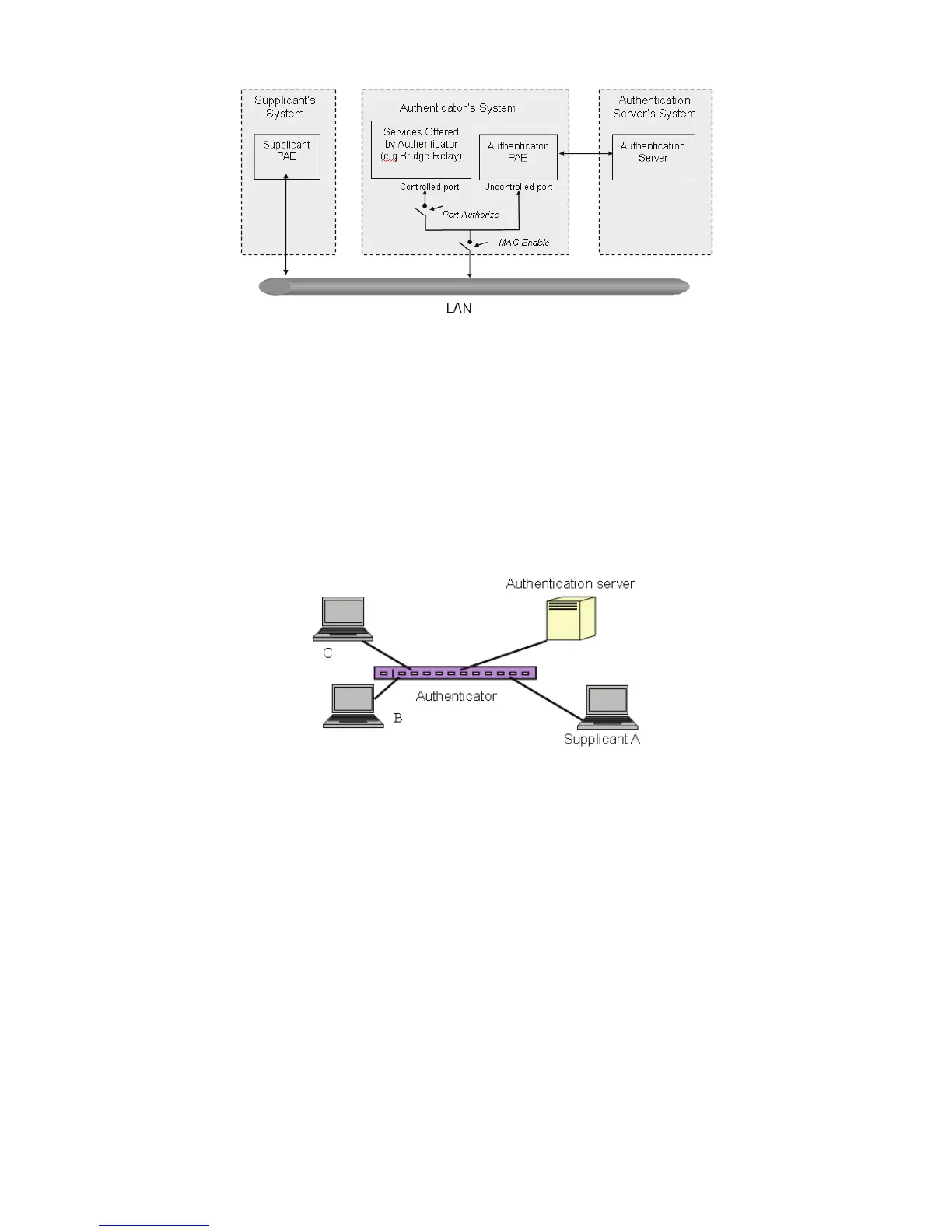 controlled port, running Supplicant PAE. In this case, PC A wants to access the services on device B and