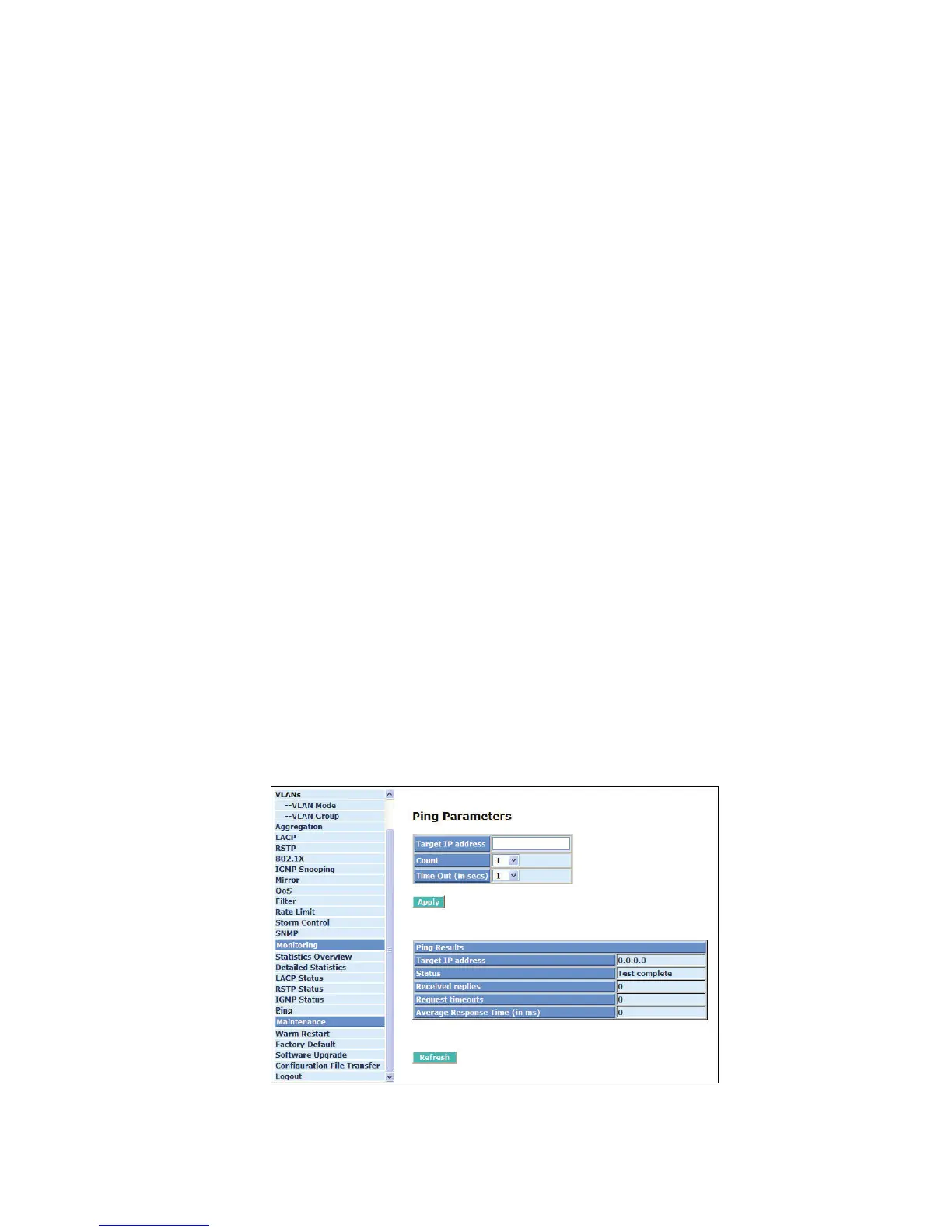 To set up target IP address for ping function and display ping status. In Fig. 4-30, the window shows