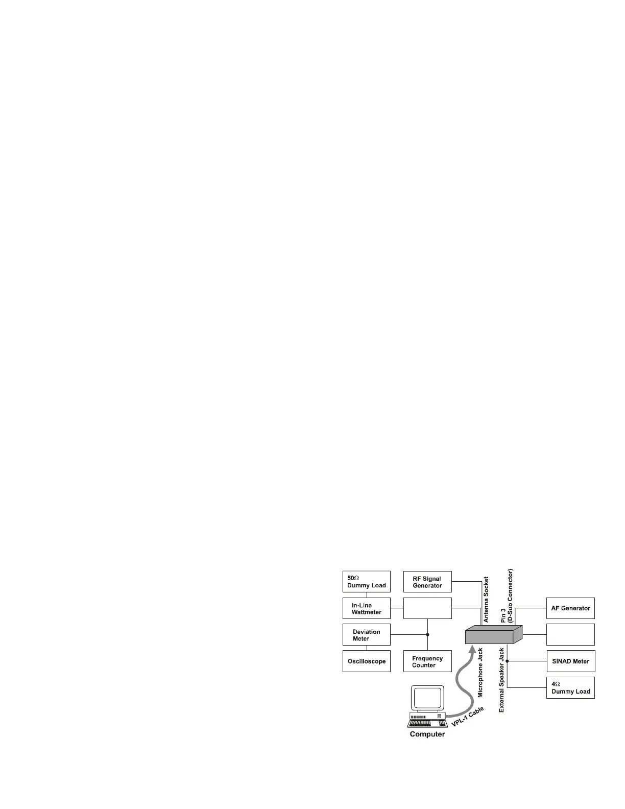 A 50Ω RF Dummy Load and in-line wattmeter must be