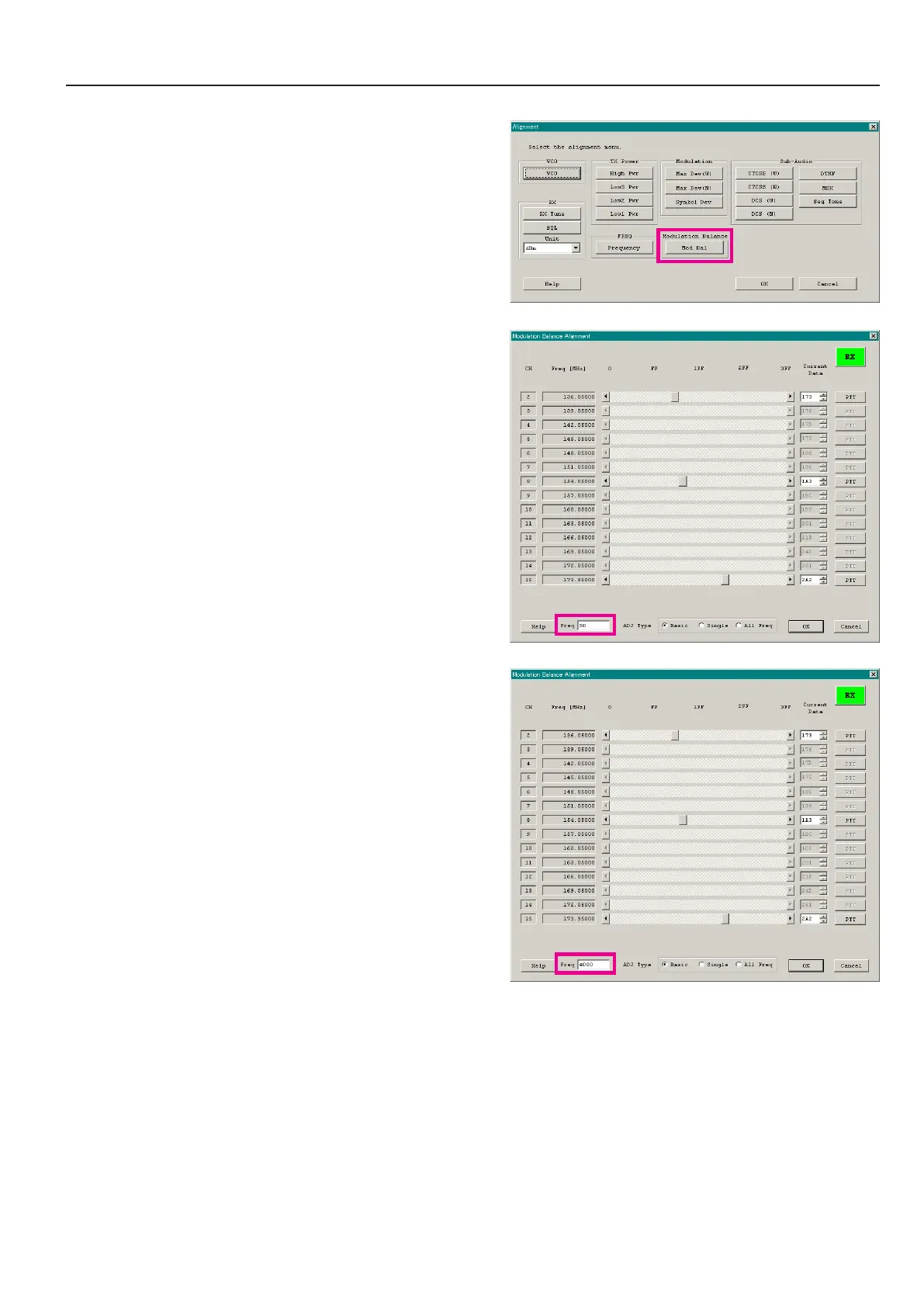 All Freq: Alignment value changes on all channels.