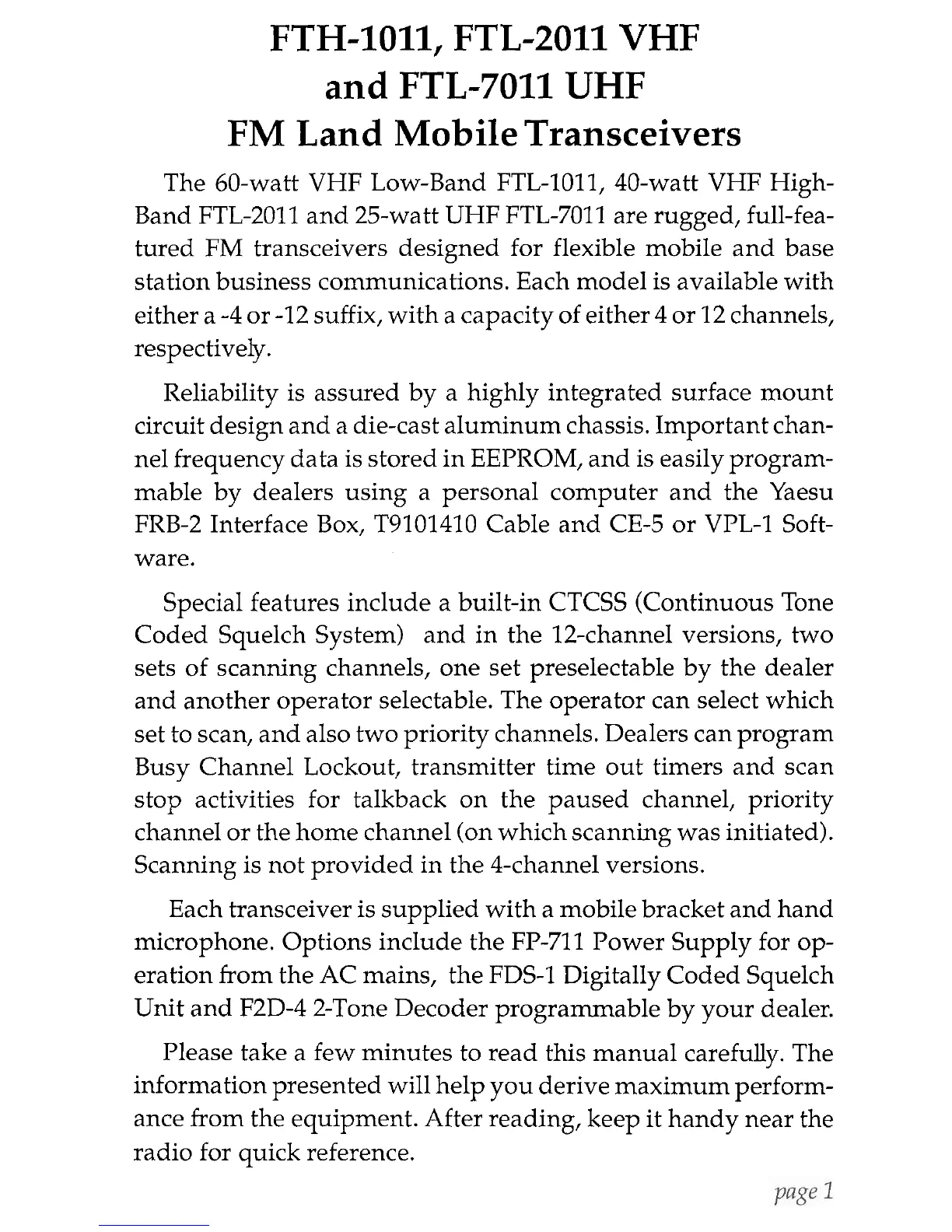 The 60-watt VHF Low-Band FTL-1011, 40-watt VHF High-