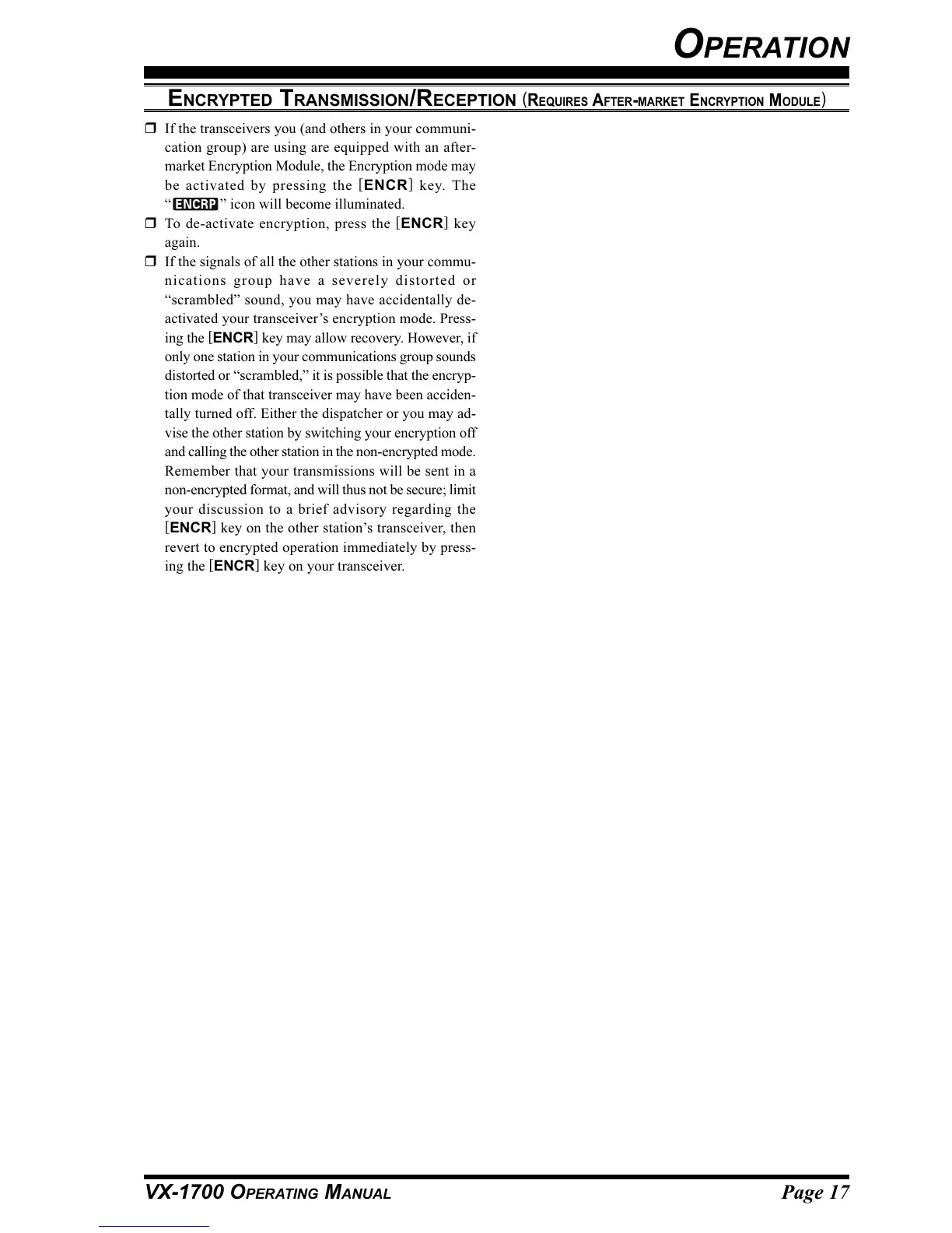 Page 17VX-1700 OPERATING MANUAL
