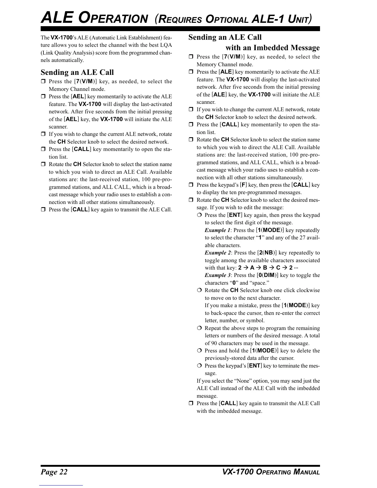 key, the VX-1700 will initiate the ALE